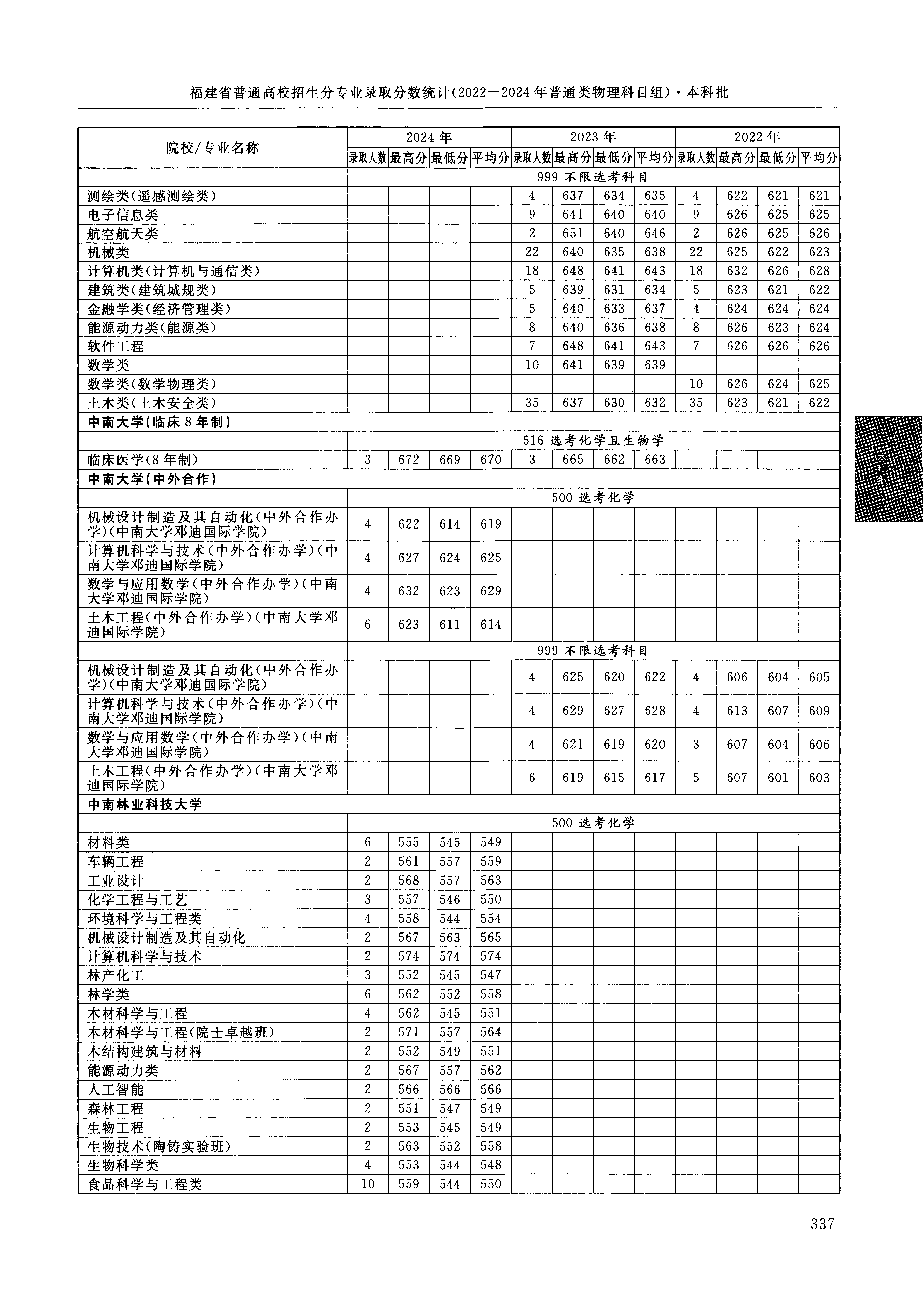 2024年福建高考普通类本科批 中南大学 的 数学与应用数学 专业录取分数溯源信息