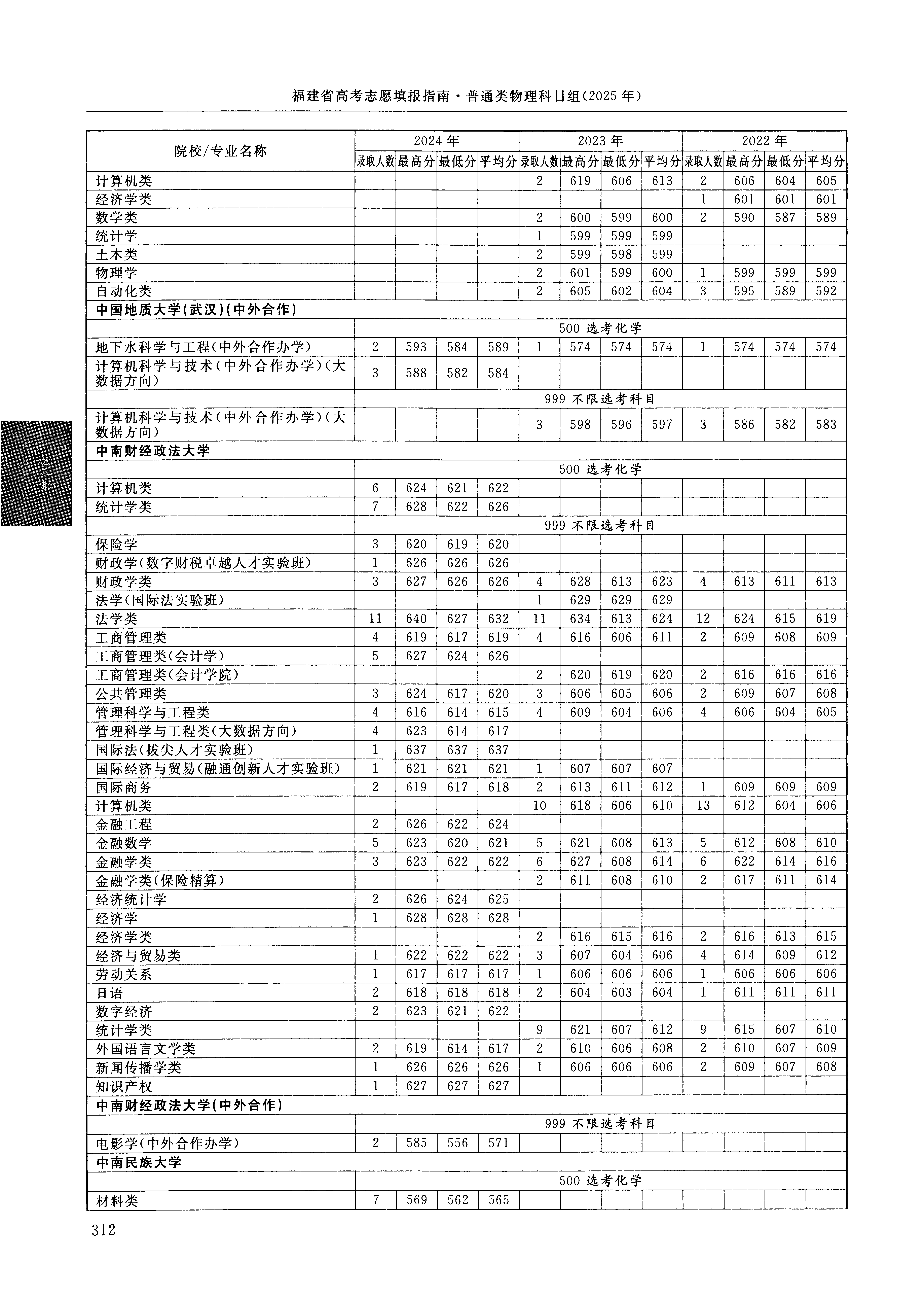 2024年福建高考普通类本科批 中南民族大学 的 环境科学与工程类 专业录取分数溯源信息