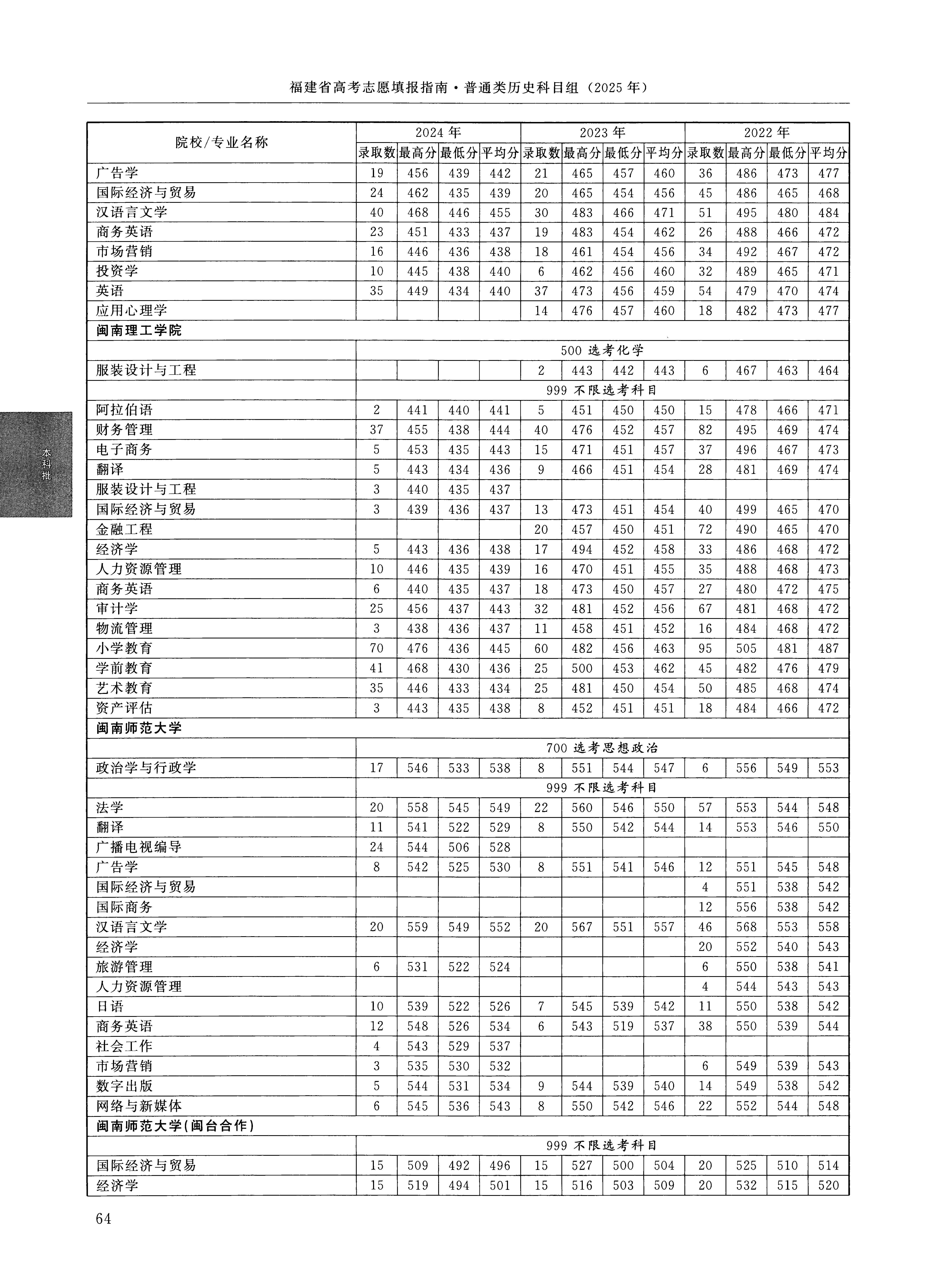 2024年福建高考普通类本科批 闽南科技学院 的 商务英语 专业录取分数溯源信息