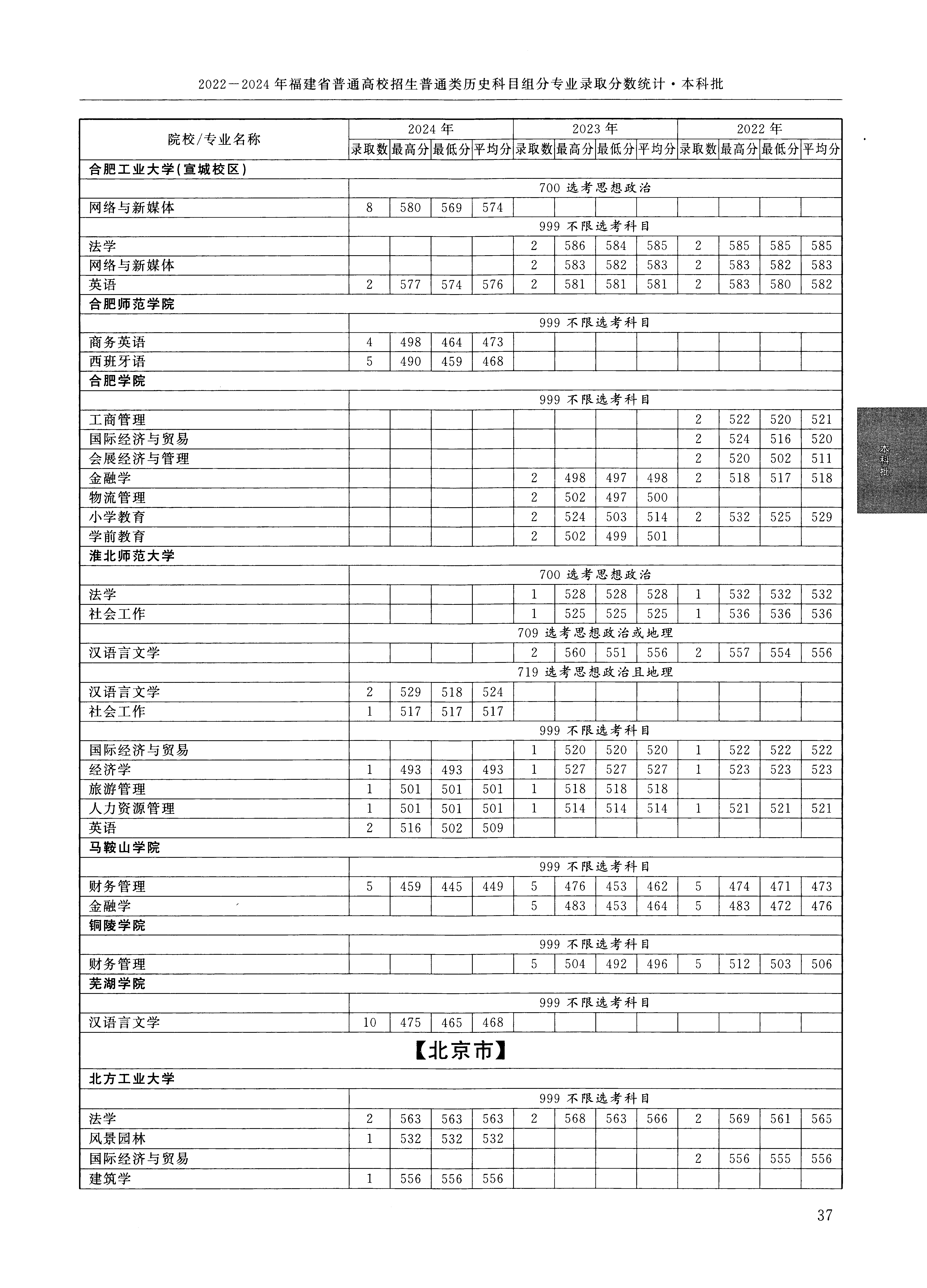 2024年福建高考普通类本科批 北方工业大学 的 经济与金融 专业录取分数溯源信息