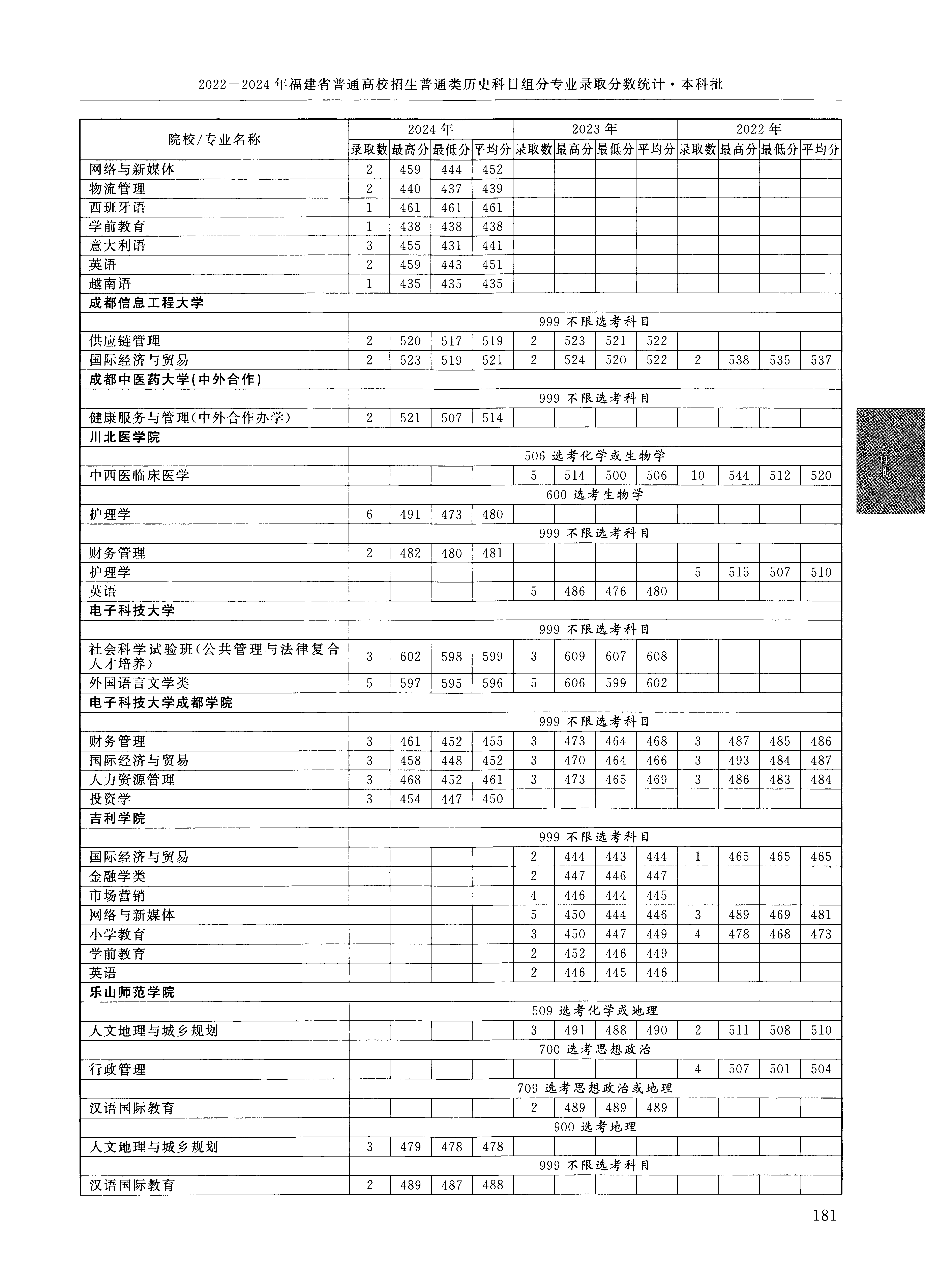 2024年福建高考普通类本科批 电子科技大学 的 社会科学试验班 专业录取分数溯源信息