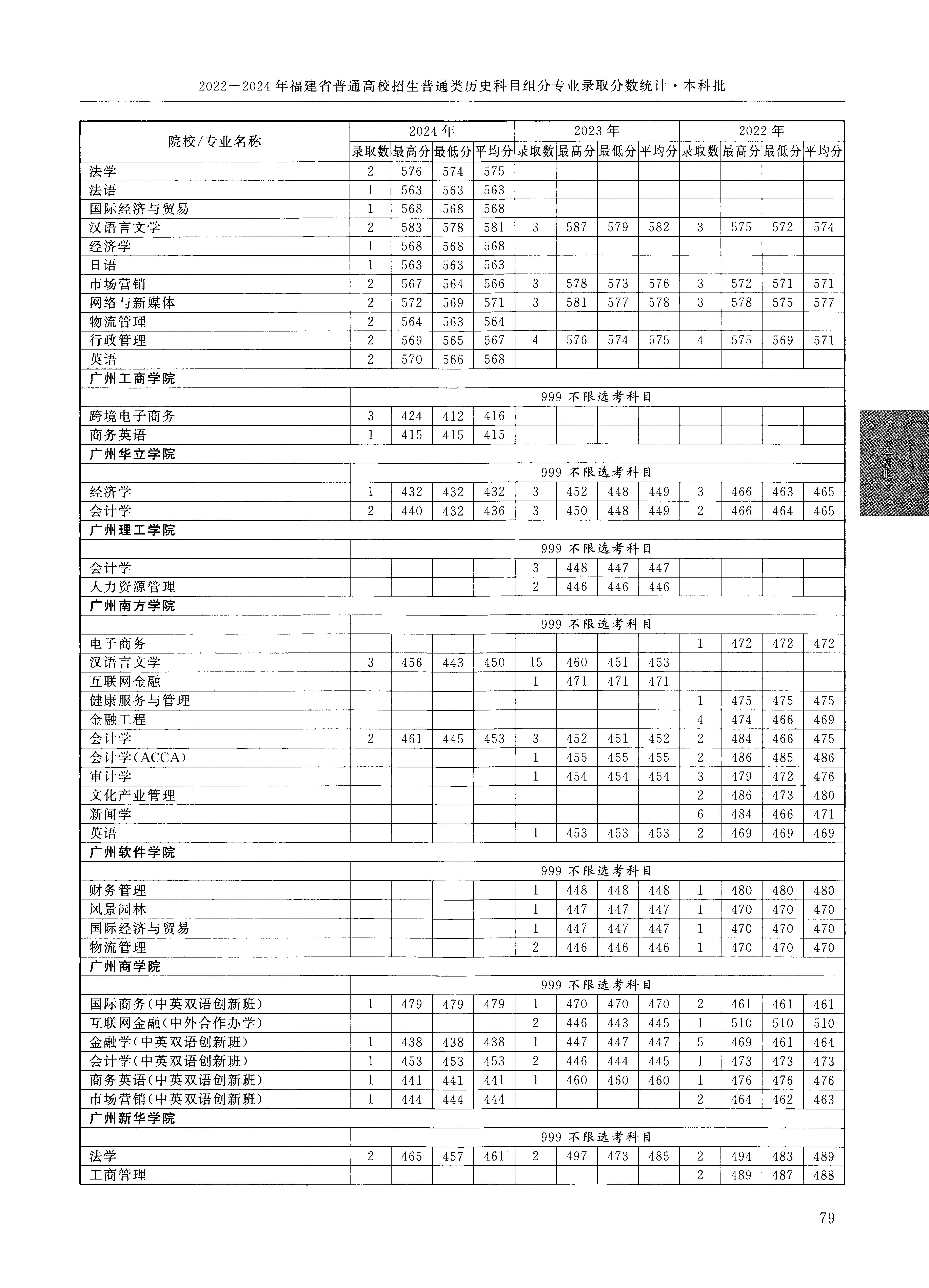 2024年福建高考普通类本科批 广州商学院 的 国际商务 专业录取分数溯源信息
