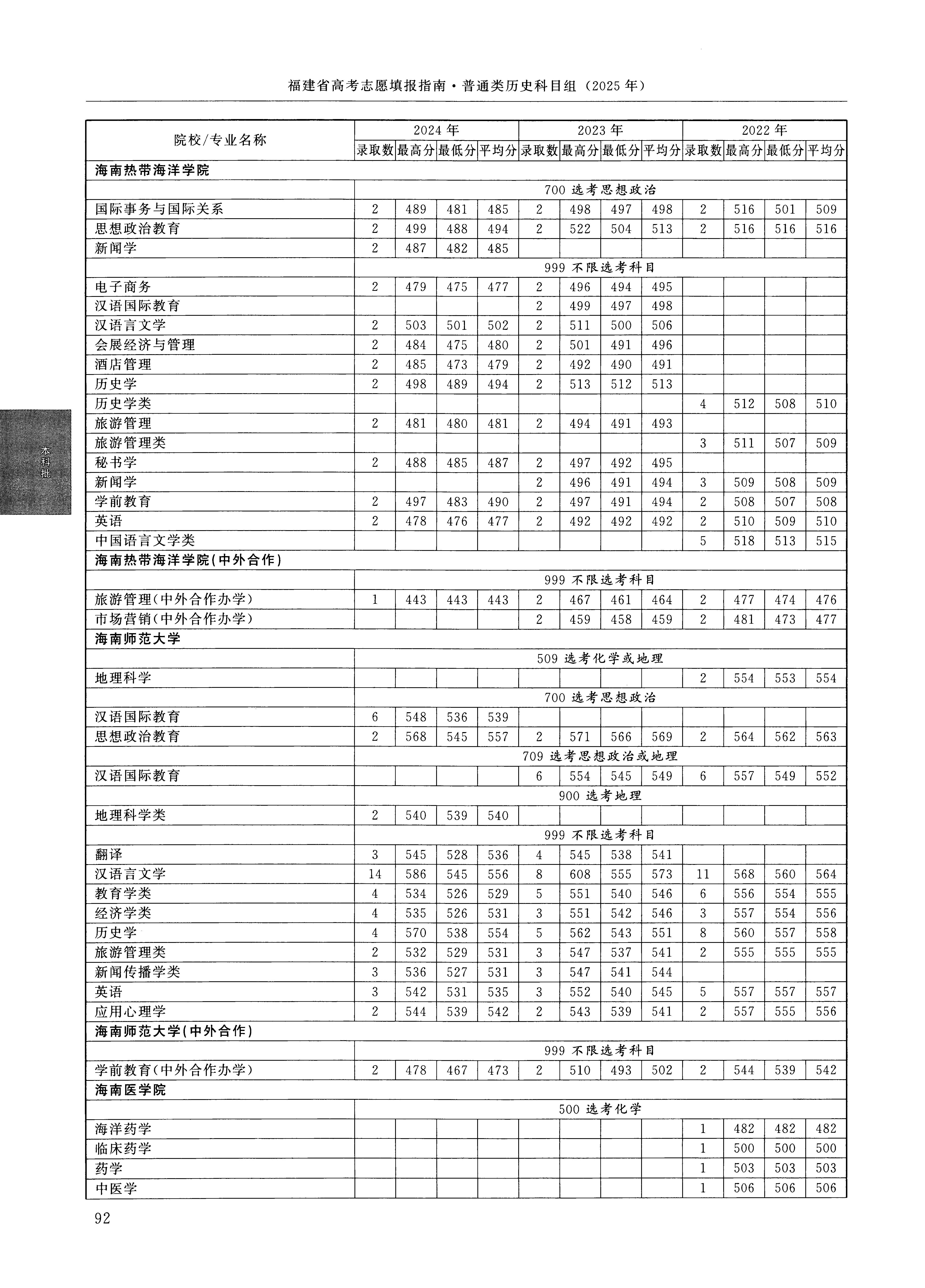 2024年福建高考普通类本科批 海南热带海洋学院 的 历史学 专业录取分数溯源信息