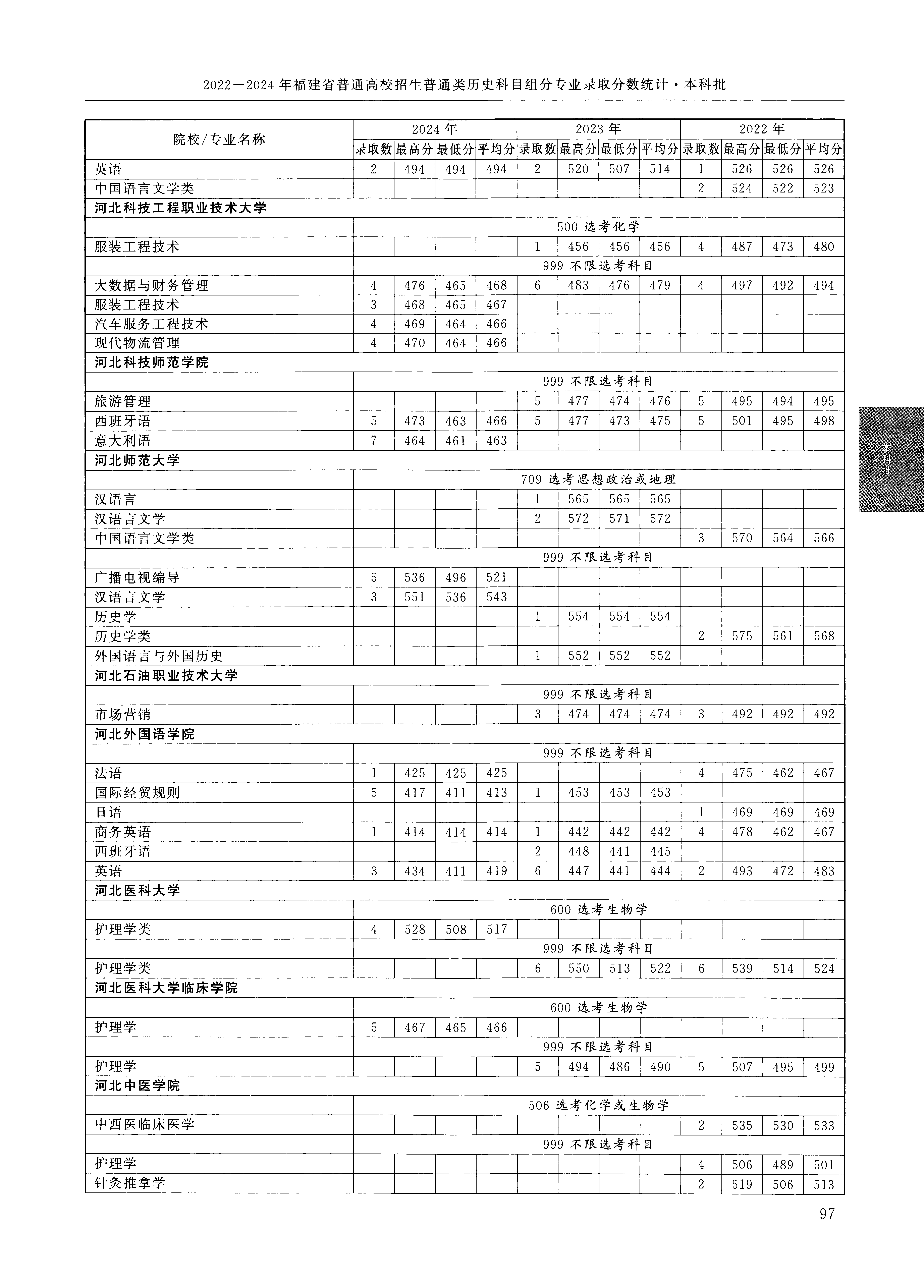 2024年福建高考普通类本科批 河北师范大学 的 广播电视编导 专业录取分数溯源信息