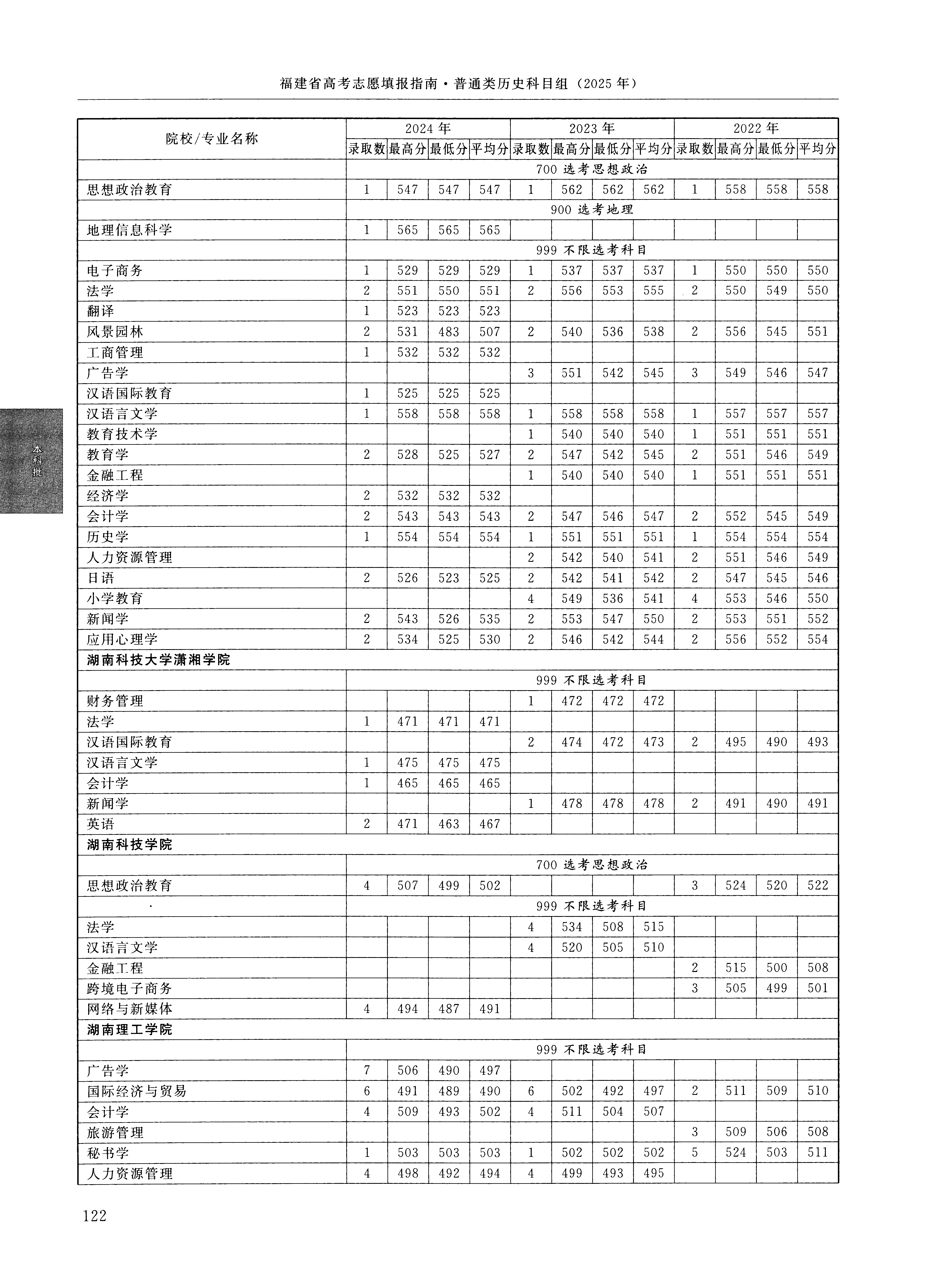 2024年福建高考普通类本科批 湖南理工学院 的 人力资源管理 专业录取分数溯源信息