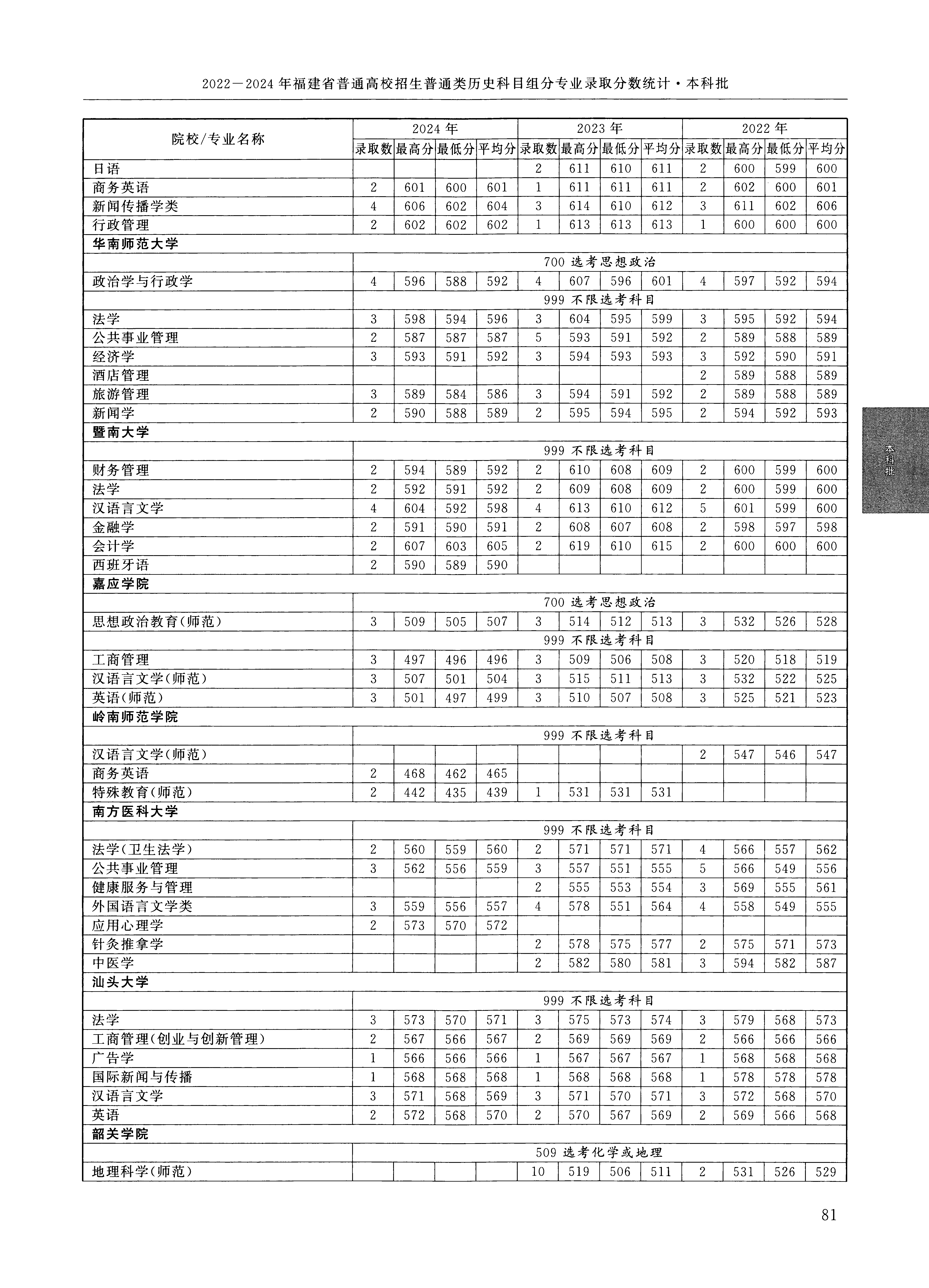 | 2785 | 华南师范大学 | 002 | 法学 | 594 | 1624 | 本科 | 历史 ,再选: 不限 | 1 |