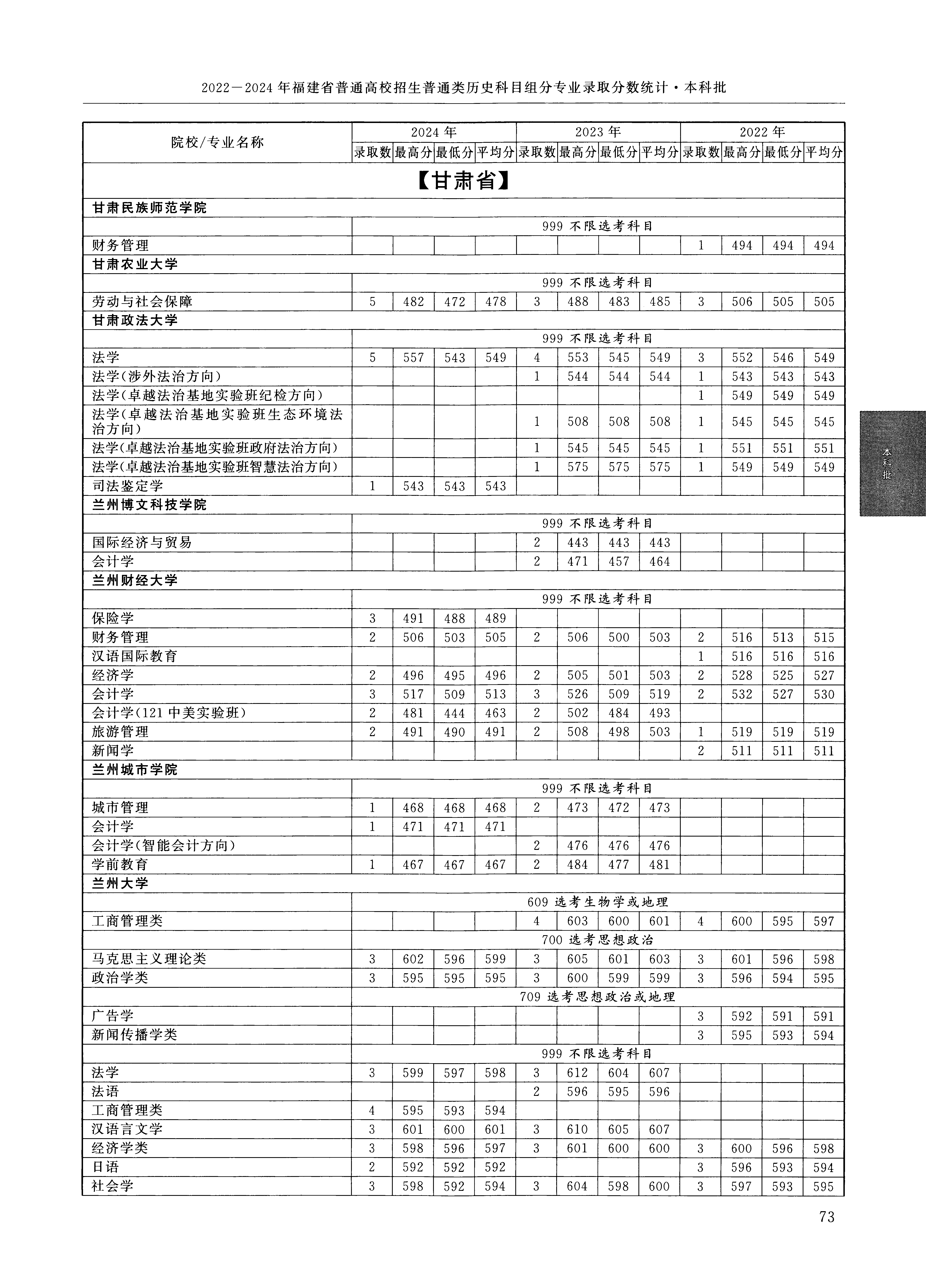 2024年福建高考普通类本科批 兰州城市学院 的 城市管理 专业录取分数溯源信息