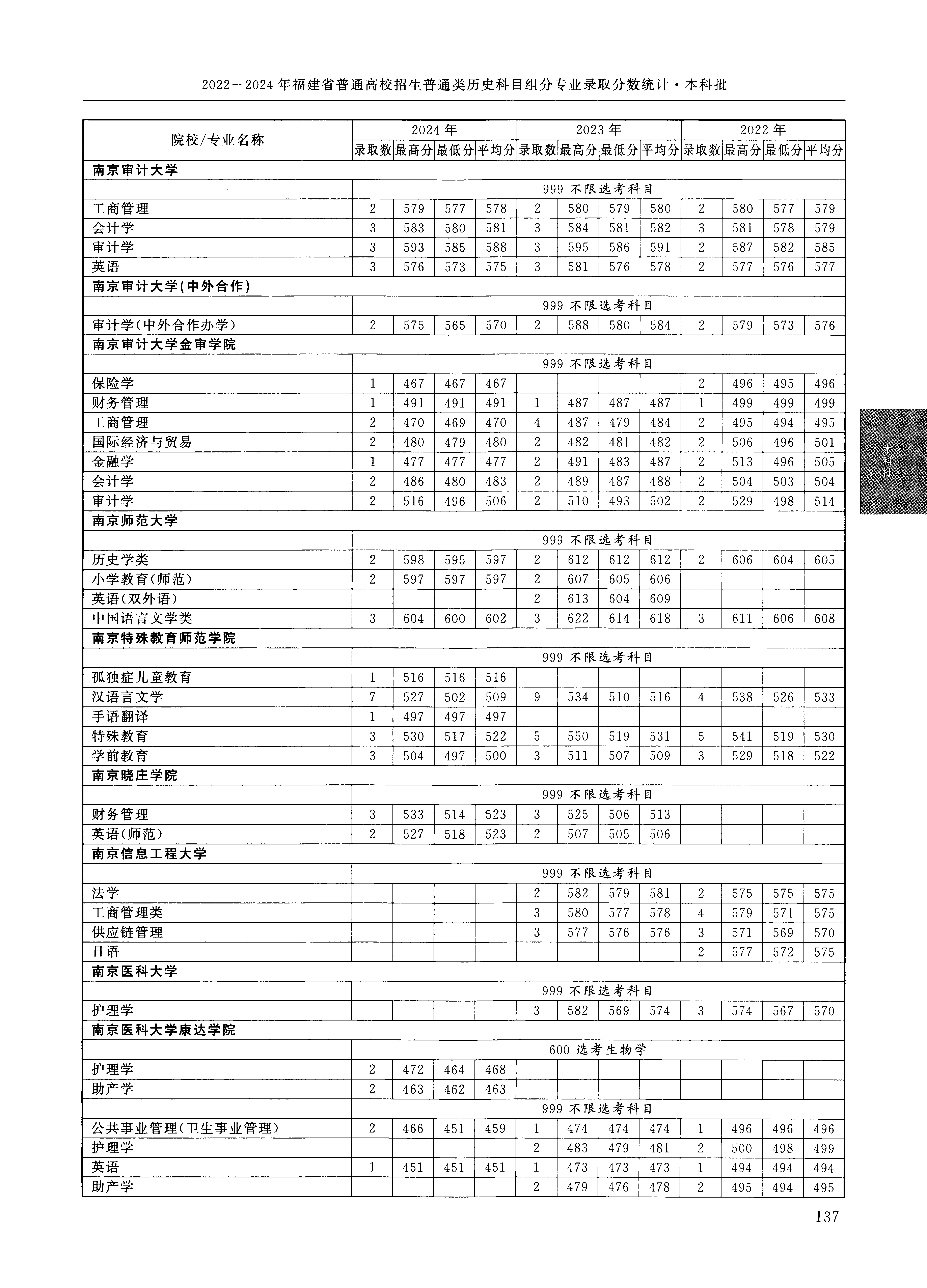 2024年福建高考普通类本科批 南京师范大学 的 小学教育 专业录取分数溯源信息