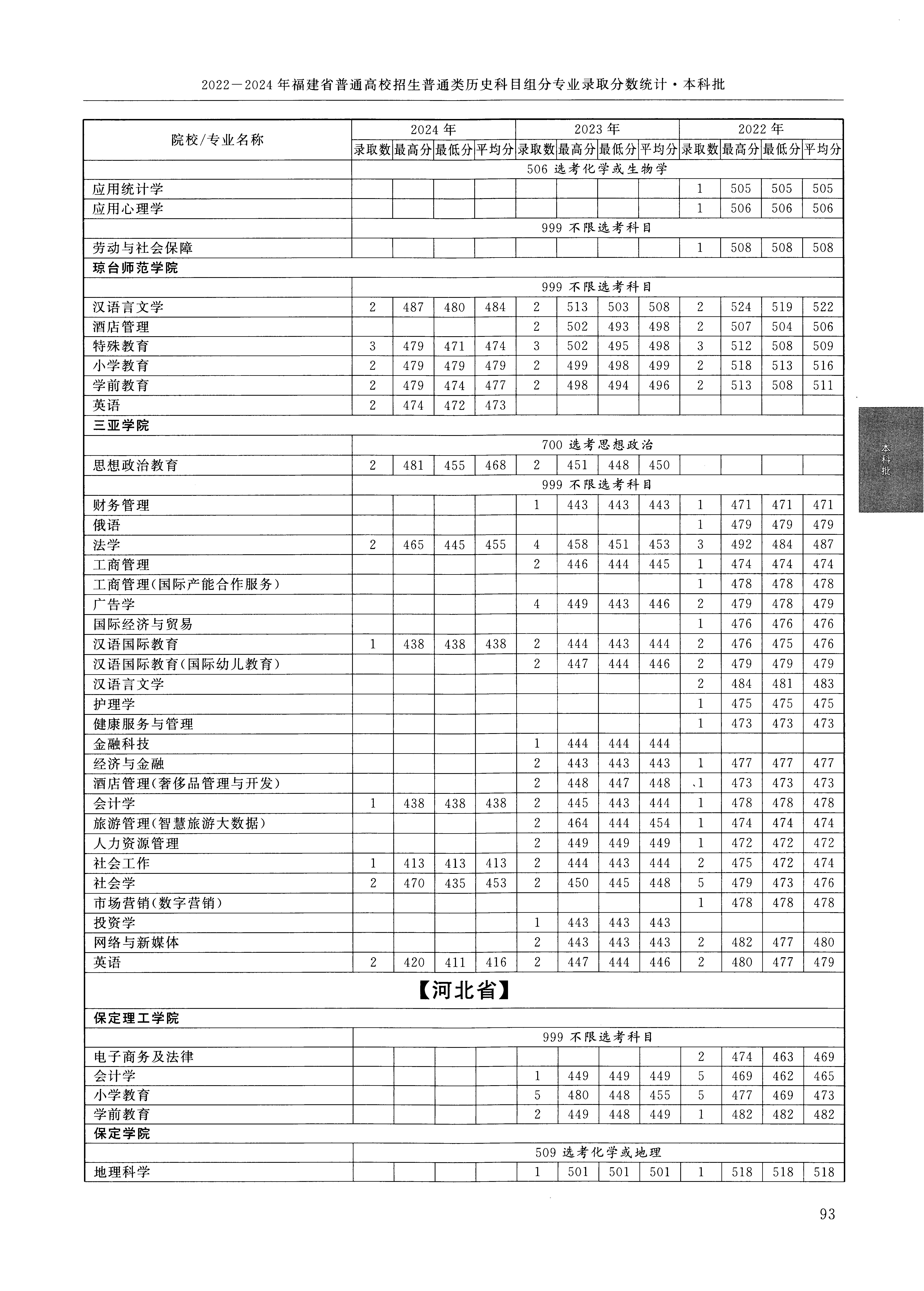 2024年福建高考普通类本科批 三亚学院 的 法学 专业录取分数溯源信息