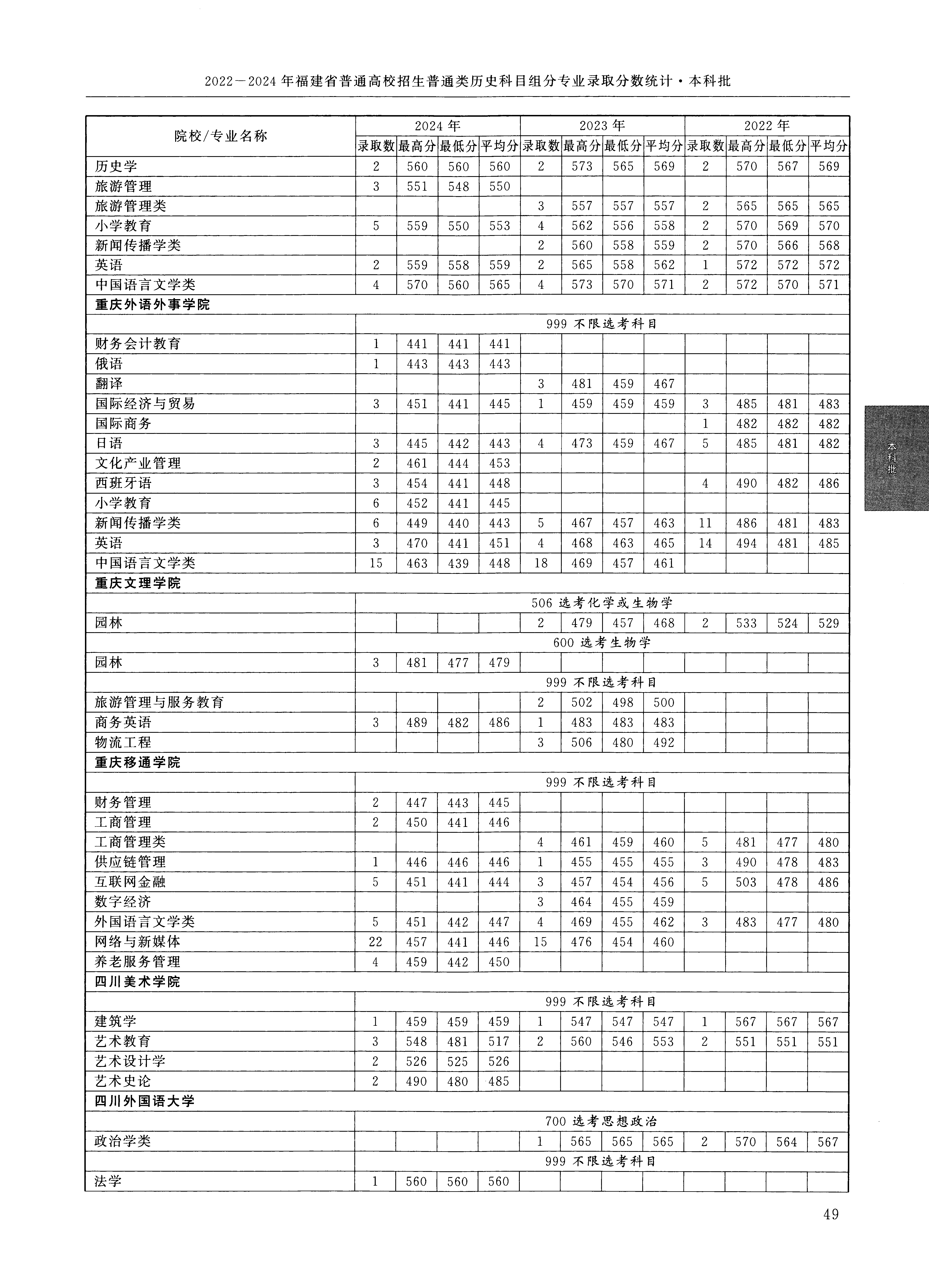 2024年福建高考普通类本科批 四川美术学院 的 艺术设计学 专业录取分数溯源信息