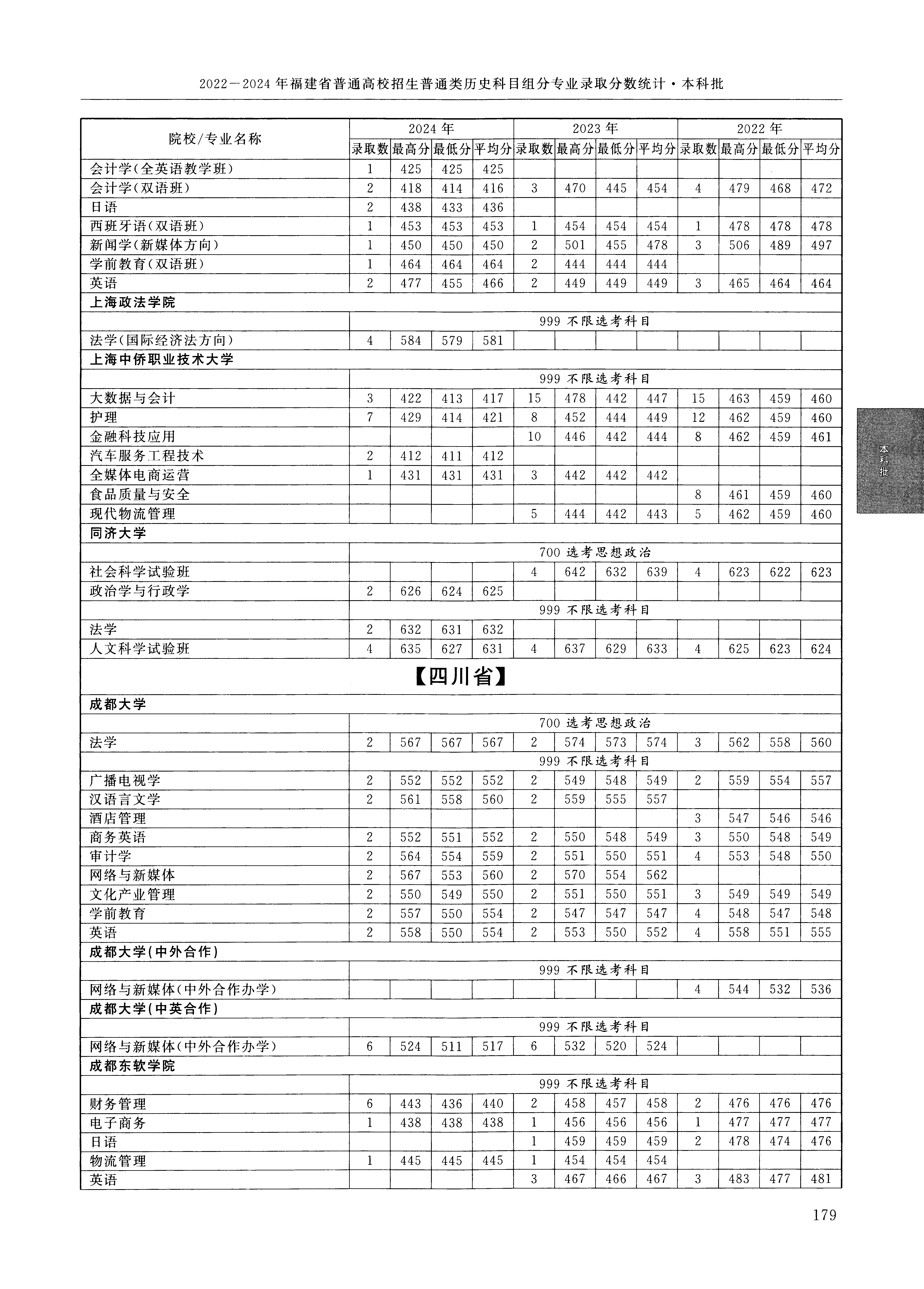 2024年福建高考普通类本科批 同济大学 的 法学 专业录取分数溯源信息