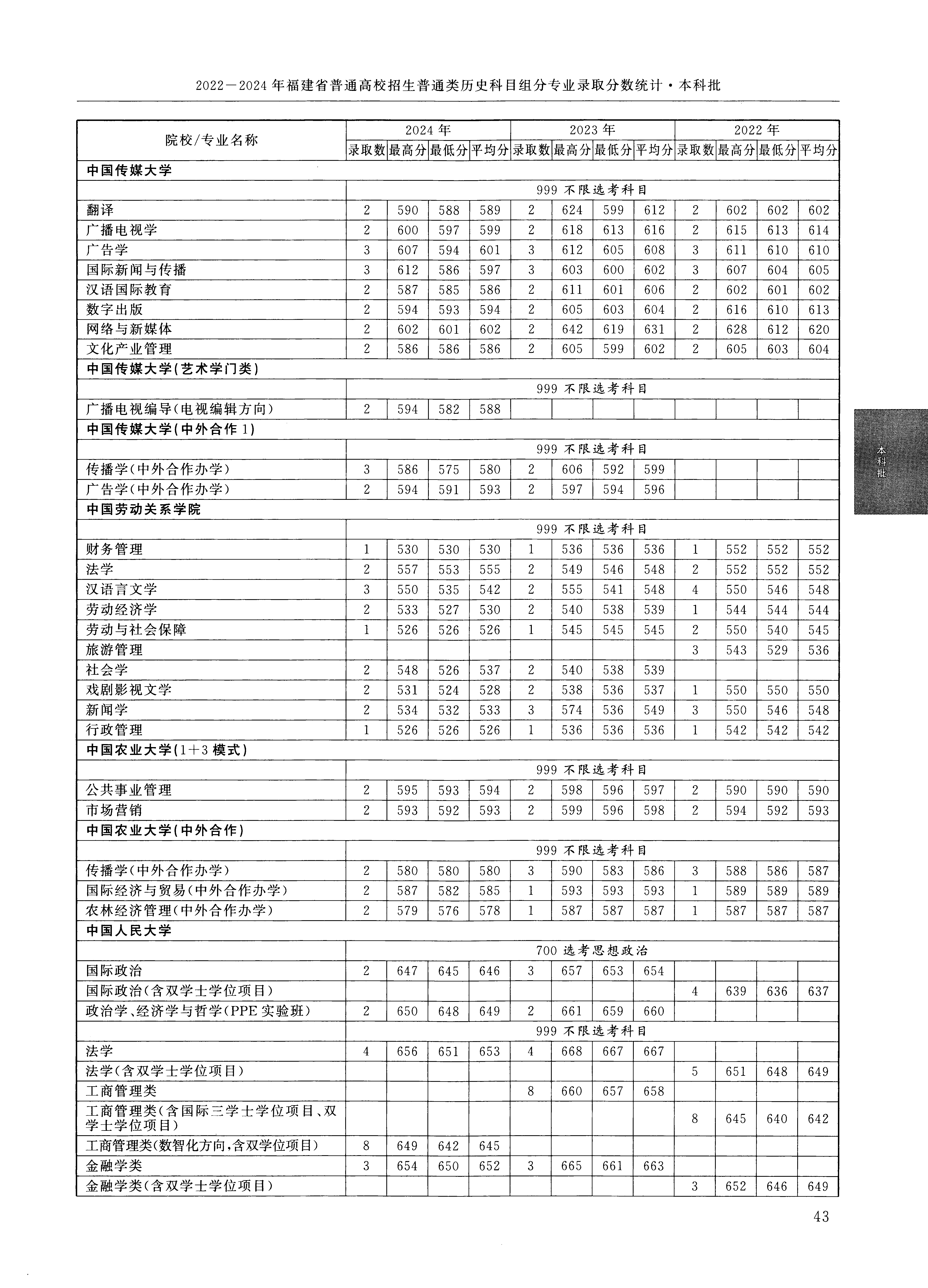 2024年福建高考普通类本科批 中国传媒大学 的 广播电视学 专业录取分数溯源信息