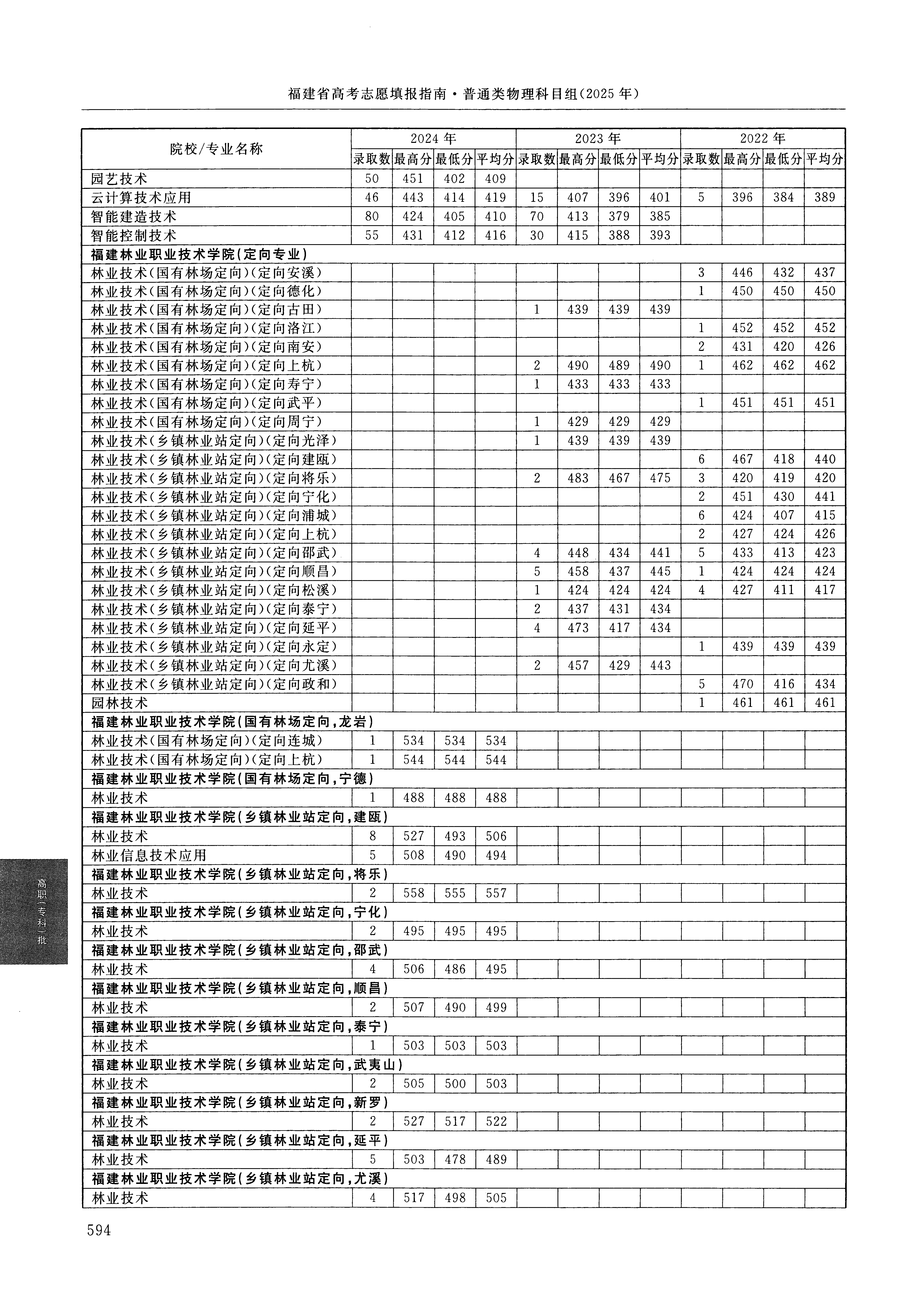 2024年福建高考普通类高职(专科)批 福建林业职业技术学院 的 林业技术 专业录取分数溯源信息