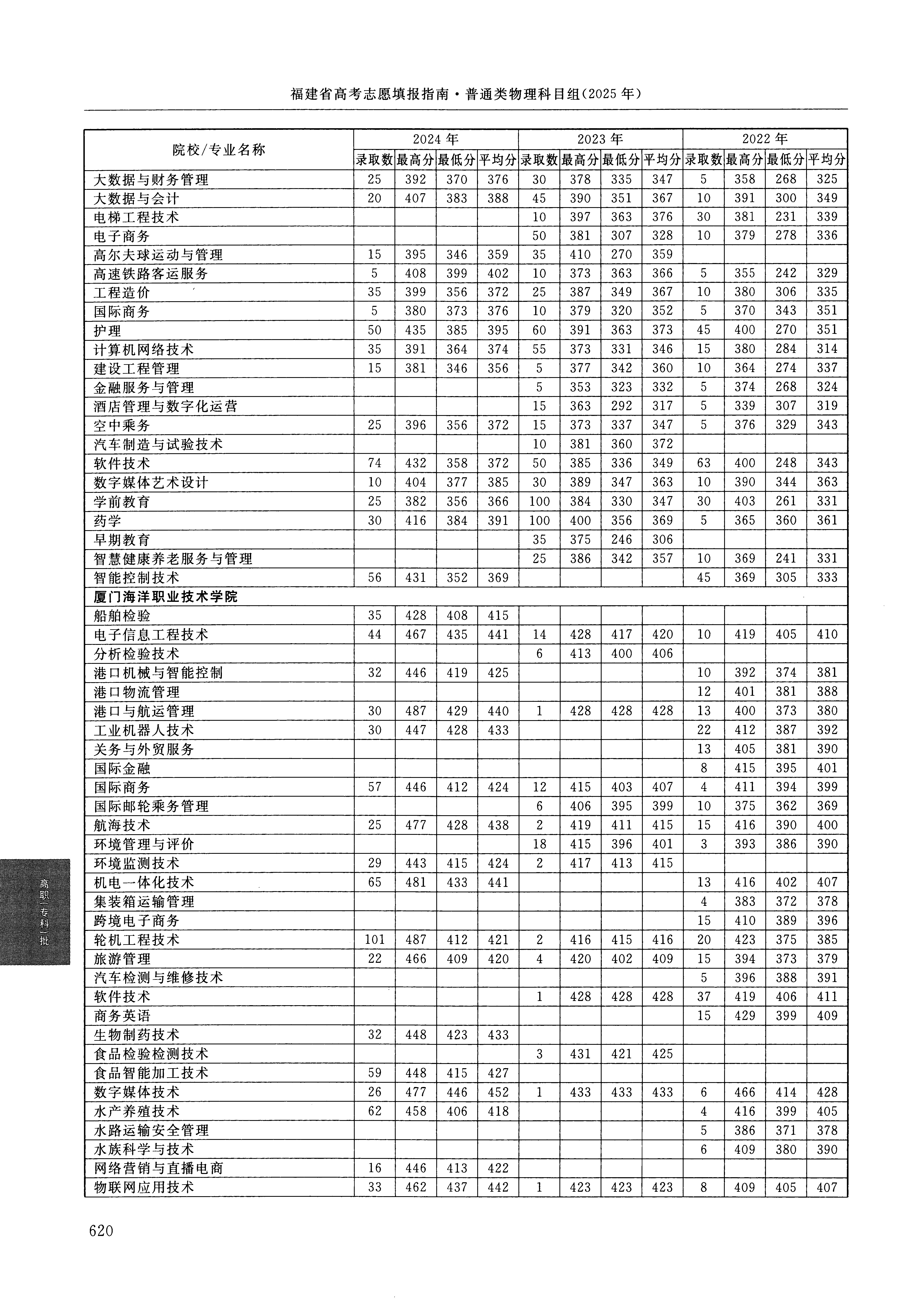 2024年福建高考普通类高职(专科)批 厦门海洋职业技术学院 的 制冷与空调技术 专业录取分数溯源信息