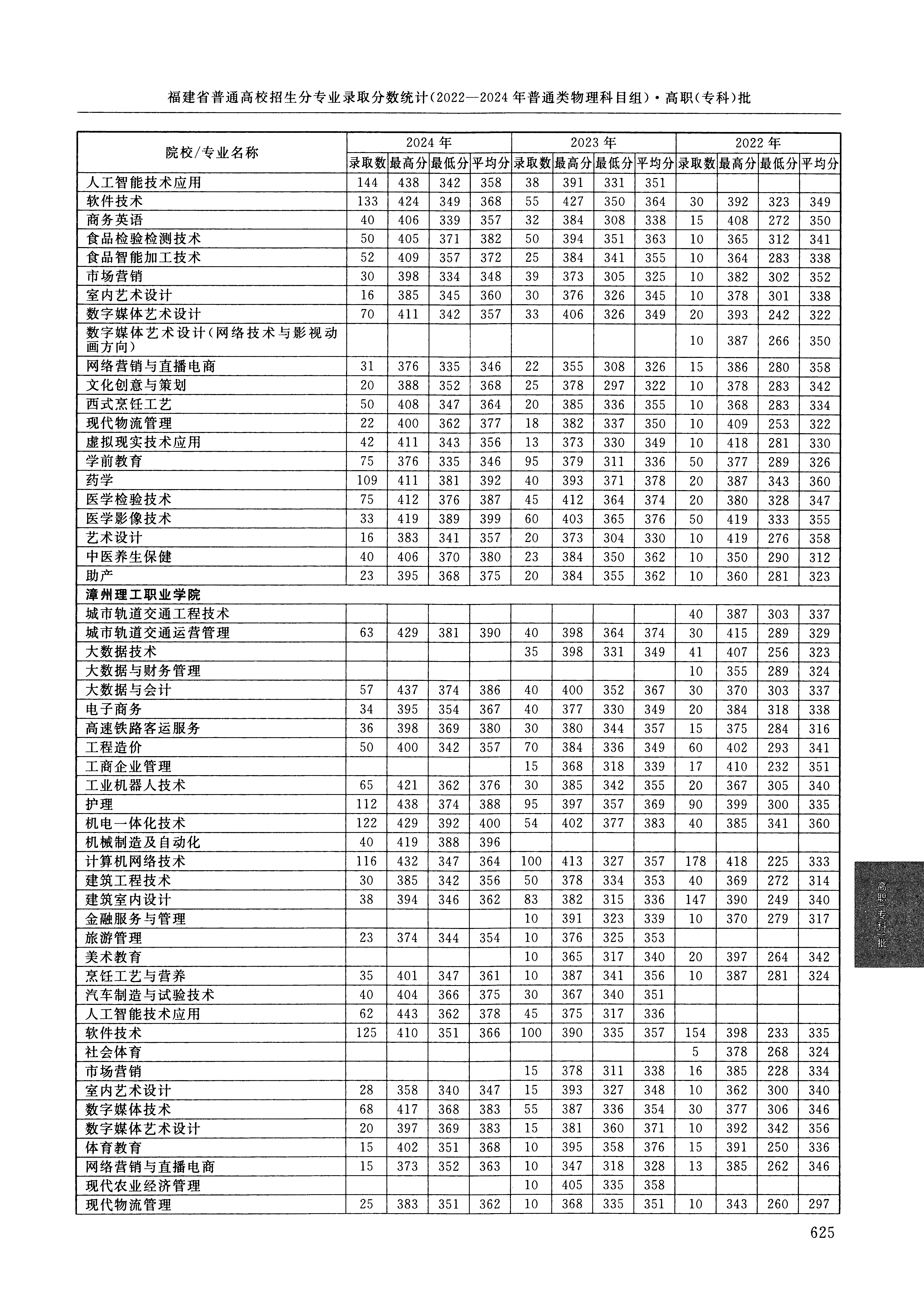 2024年福建高考普通类高职(专科)批 漳州理工职业学院 的 大数据与会计 专业录取分数溯源信息