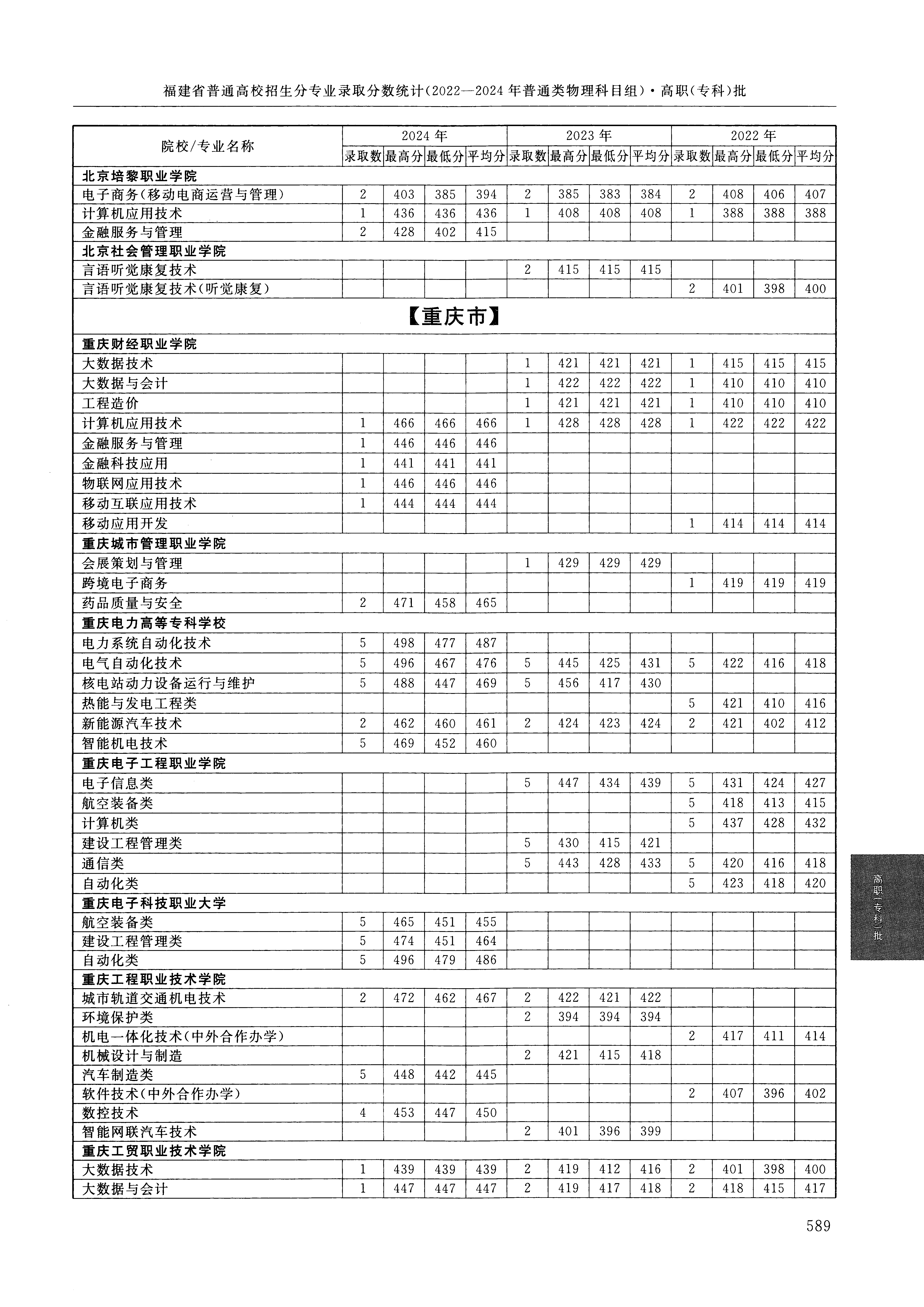 2024年福建高考普通类高职(专科)批 重庆工程职业技术学院 的 汽车制造类 专业录取分数溯源信息