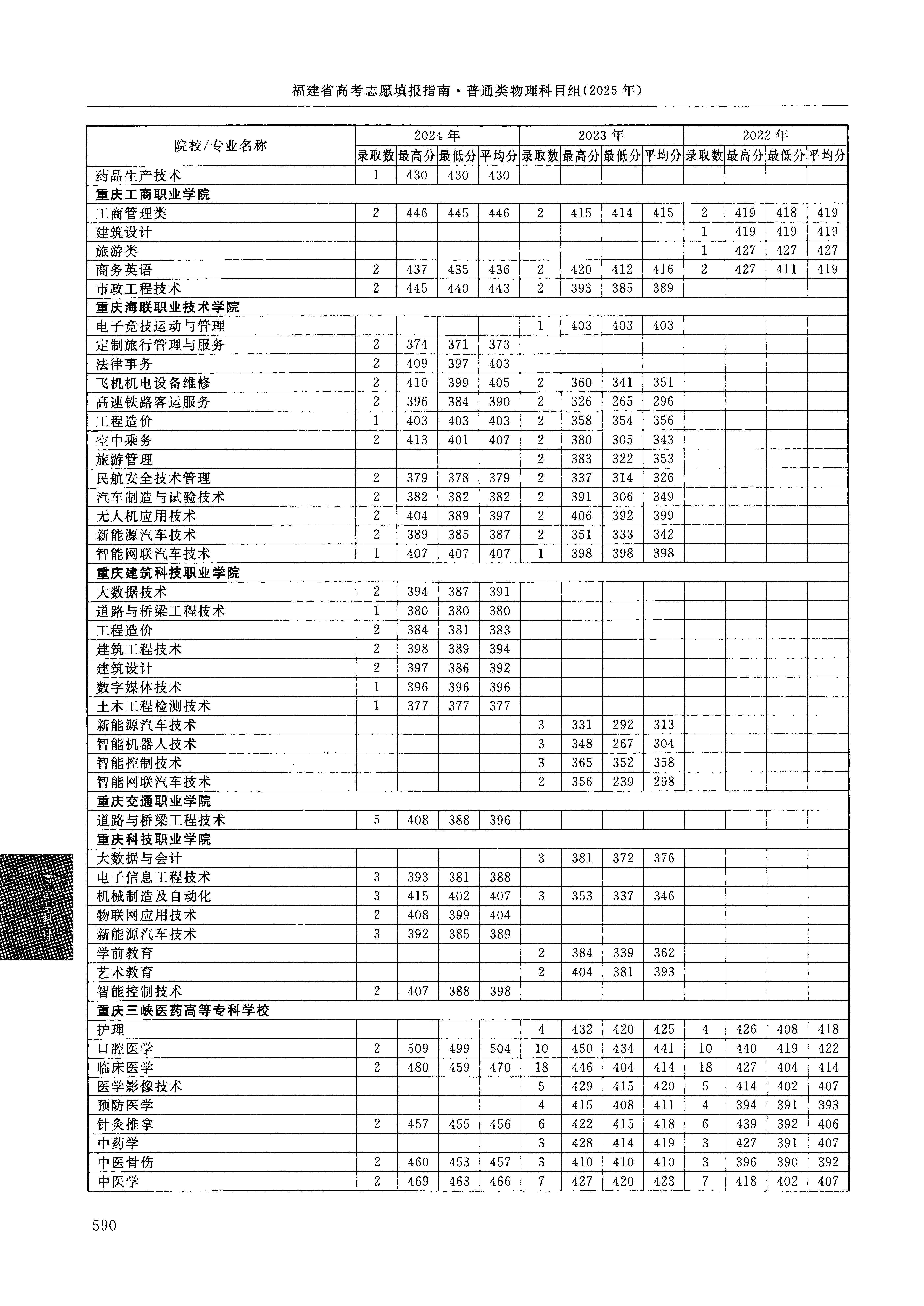 2024年福建高考普通类高职(专科)批 重庆三峡医药高等专科学校 的 口腔医学 专业录取分数溯源信息