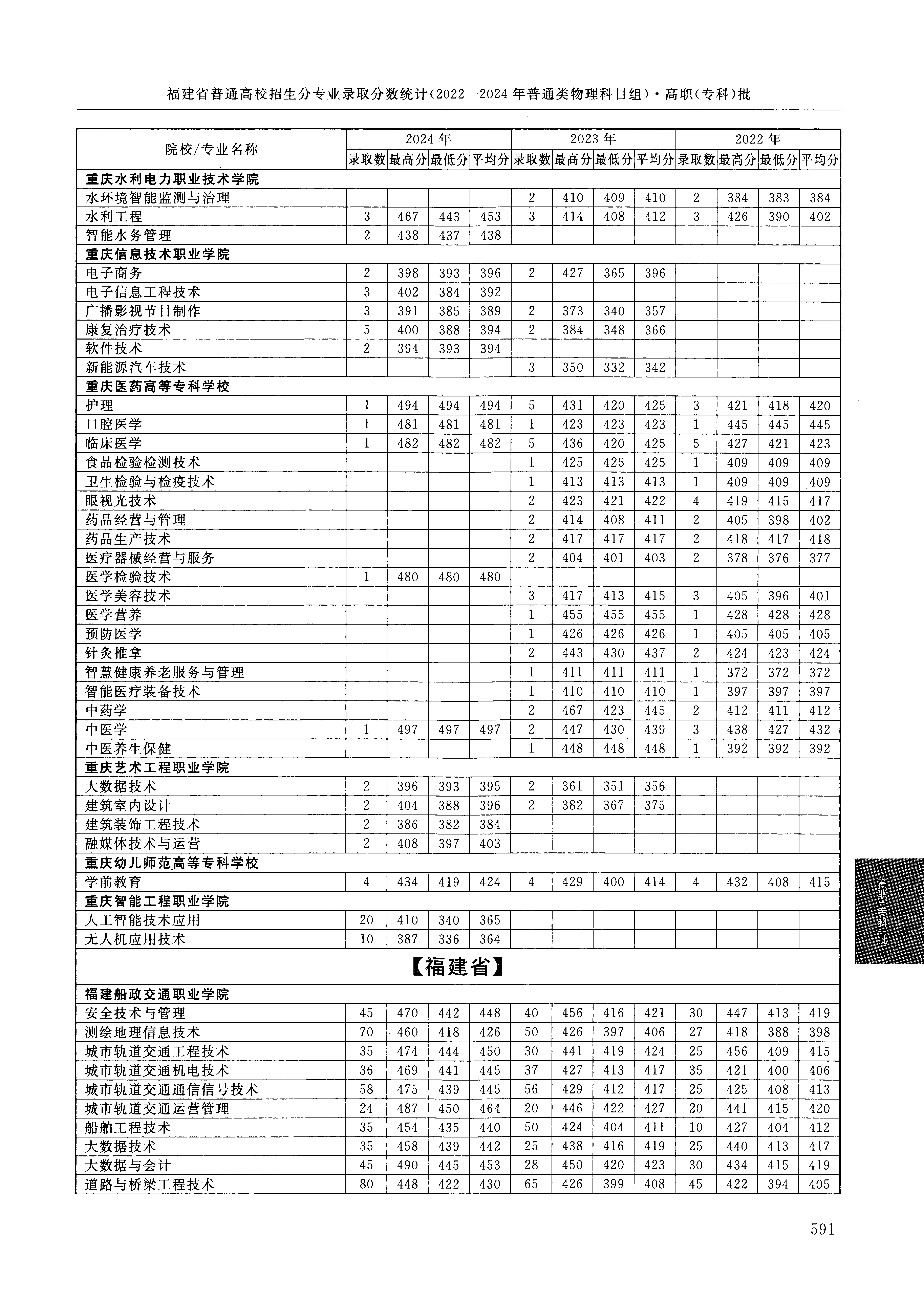 2024年福建高考普通类高职(专科)批 重庆医药高等专科学校 的 护理 专业录取分数溯源信息