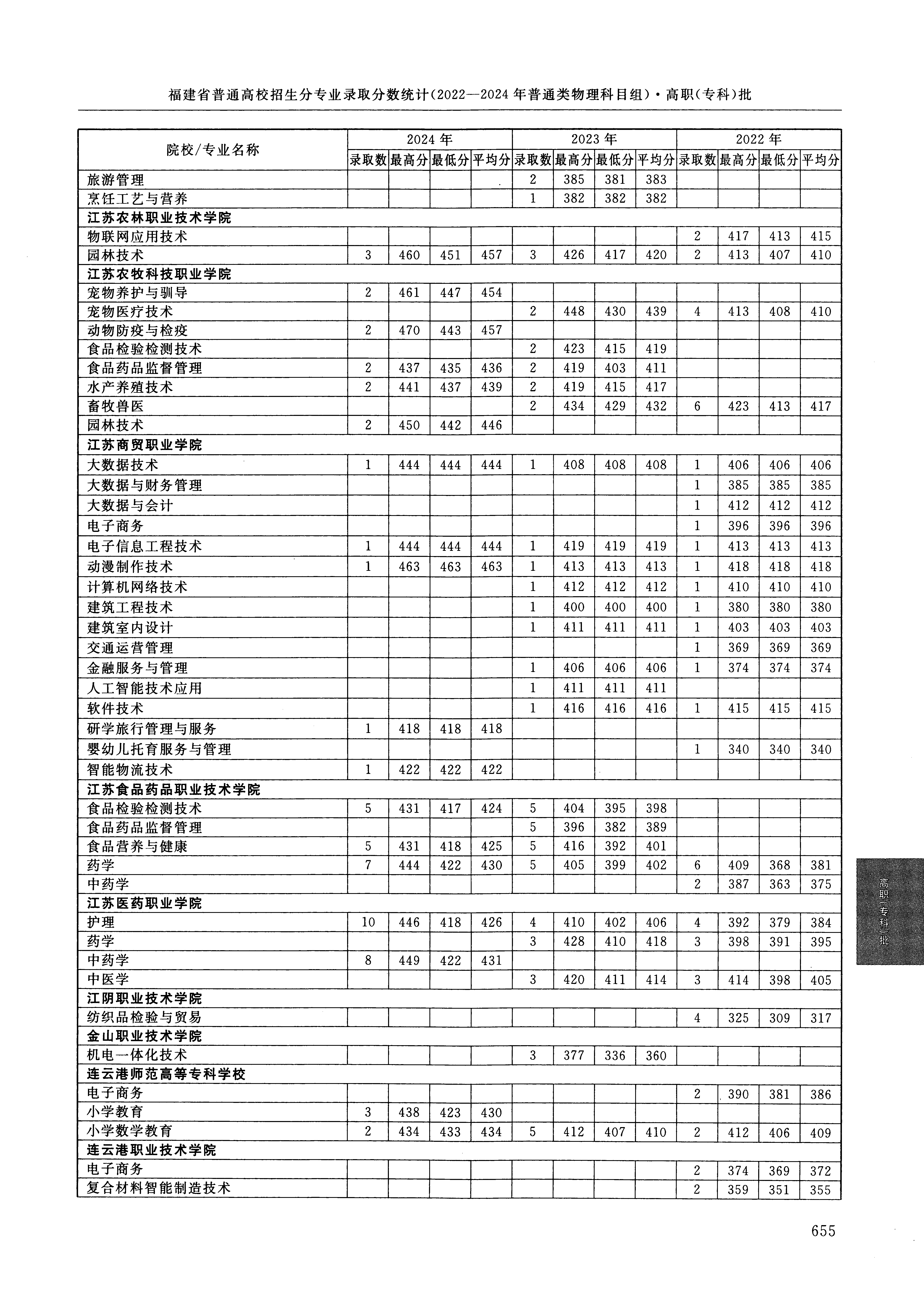 2024年福建高考普通类高职(专科)批 江苏医药职业学院 的 中药学 专业录取分数溯源信息