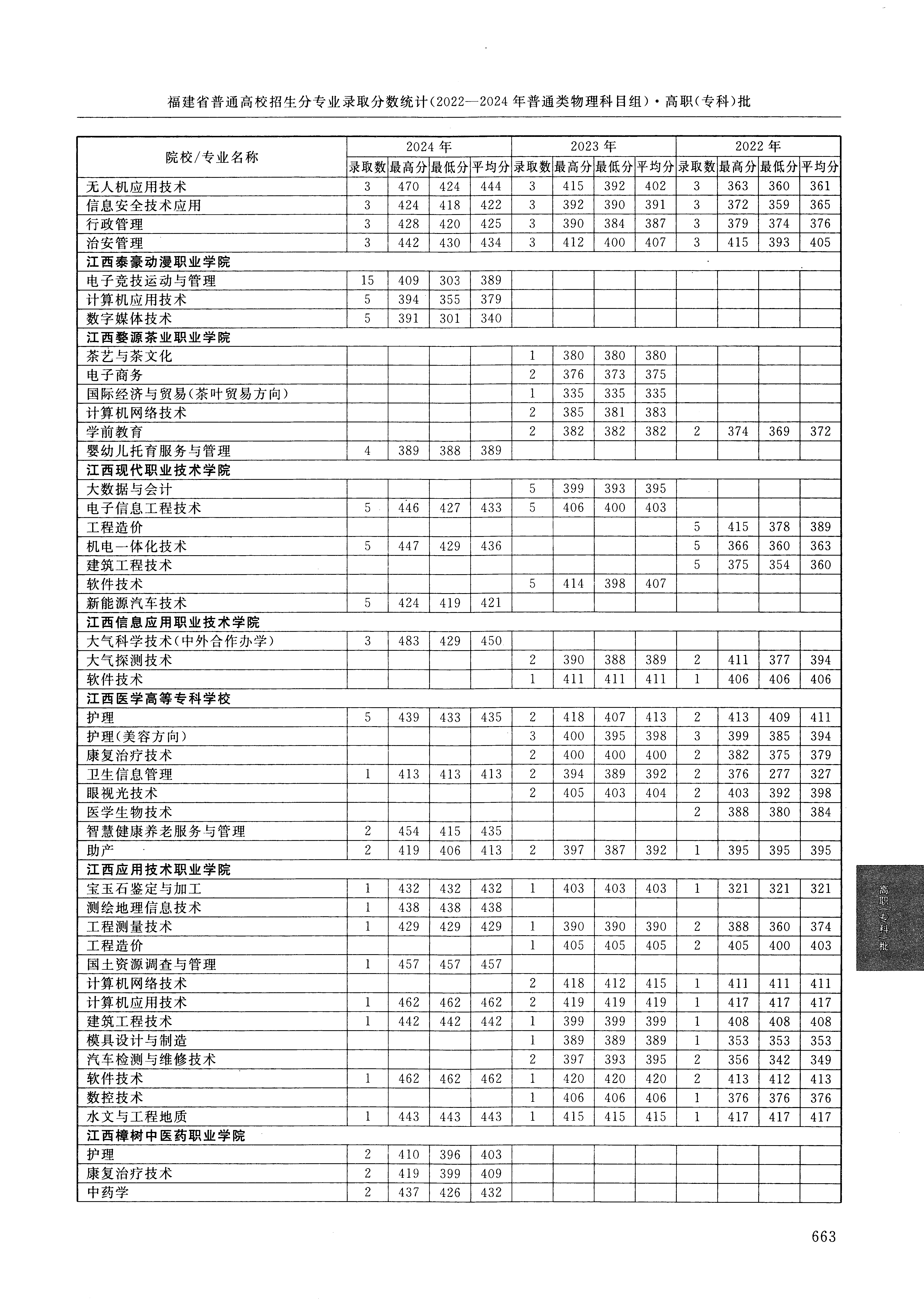 2024年福建高考普通类高职(专科)批 江西医学高等专科学校 的 智慧健康养老服务与管理 专业录取分数溯源信息