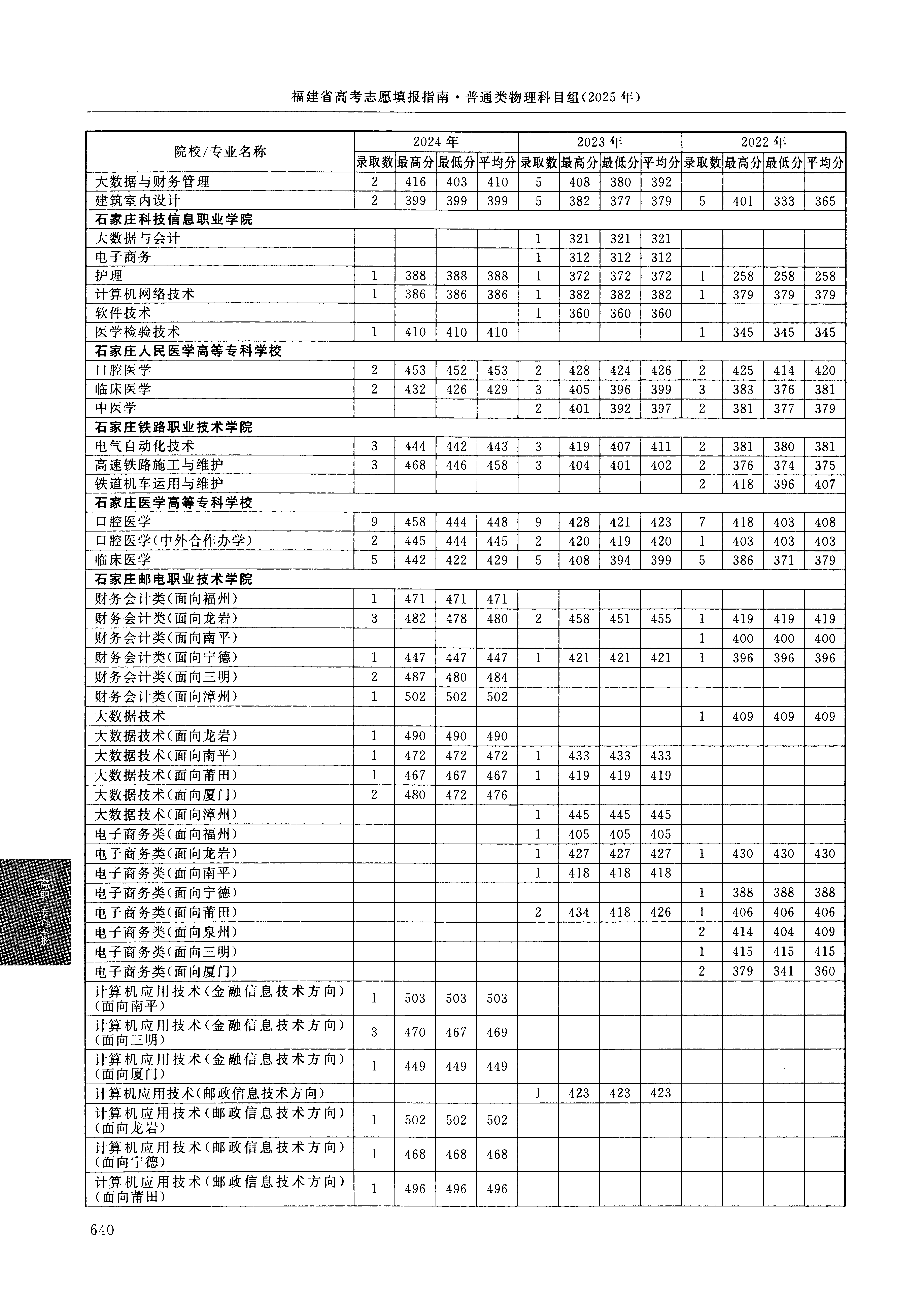 2024年福建高考普通类高职(专科)批 石家庄人民医学高等专科学校 的 口腔医学 专业录取分数溯源信息