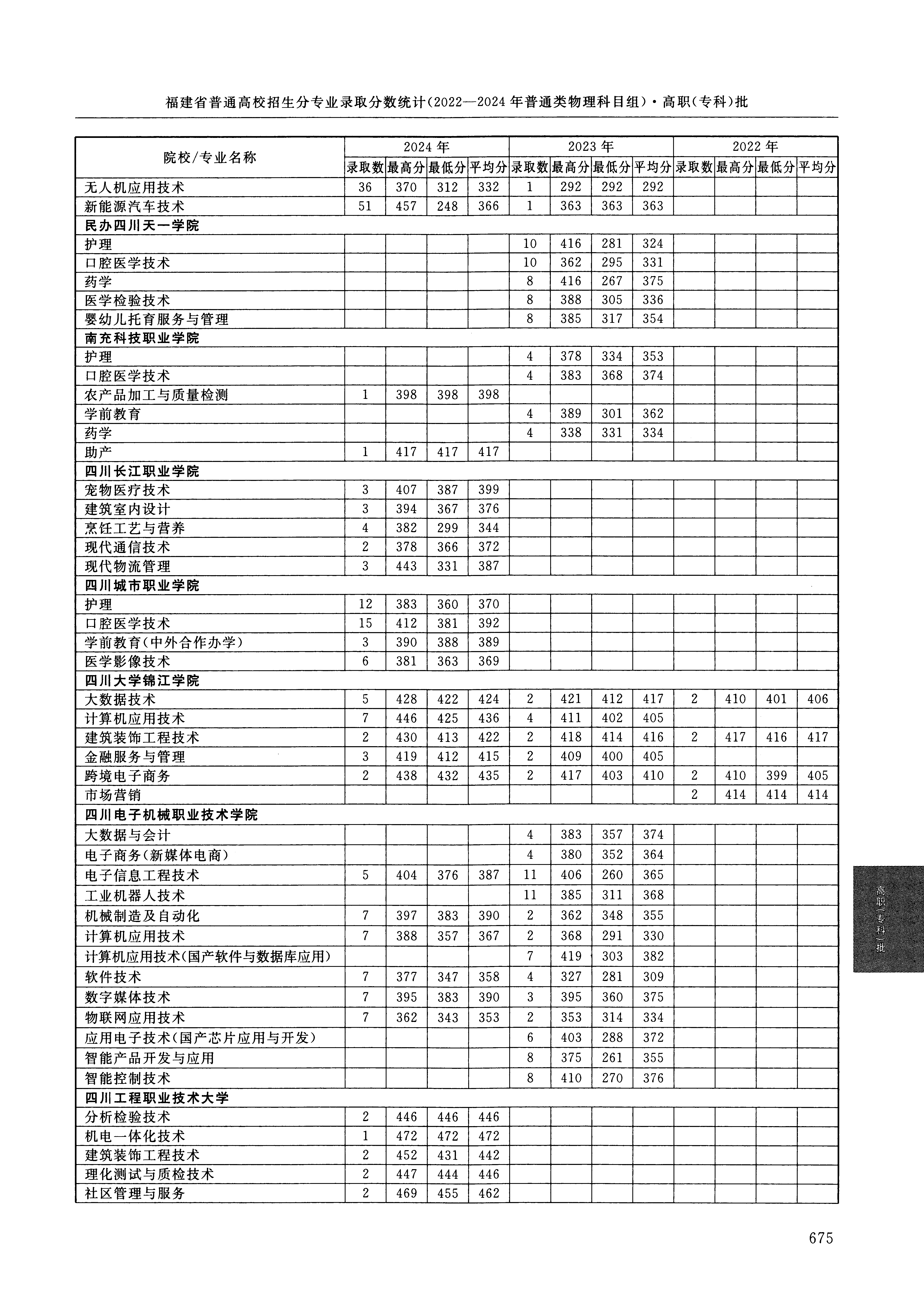2024年福建高考普通类高职(专科)批 四川工程职业技术大学 的 新能源汽车技术 专业录取分数溯源信息