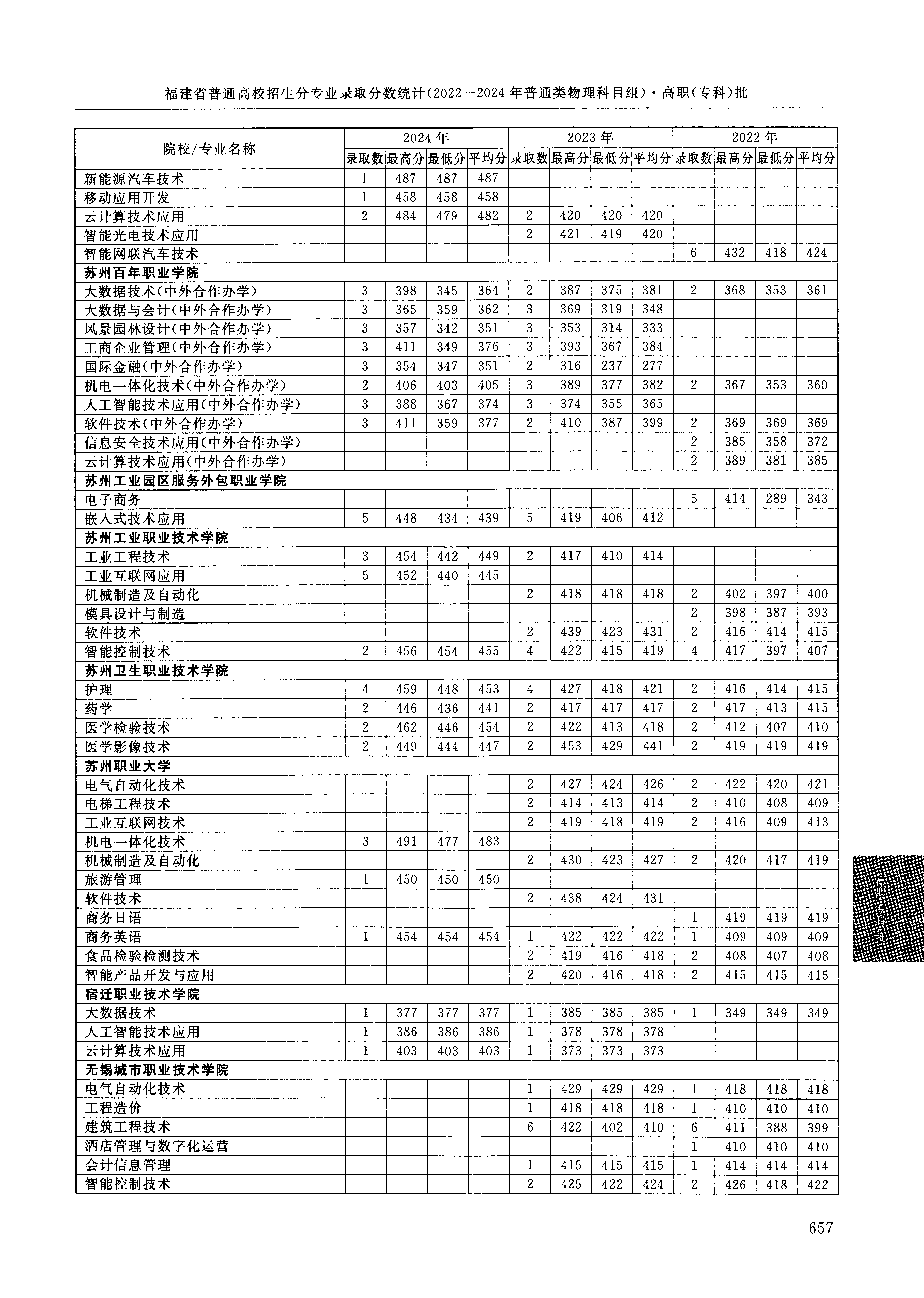 2024年福建高考普通类高职(专科)批 苏州工业职业技术学院 的 智能控制技术 专业录取分数溯源信息