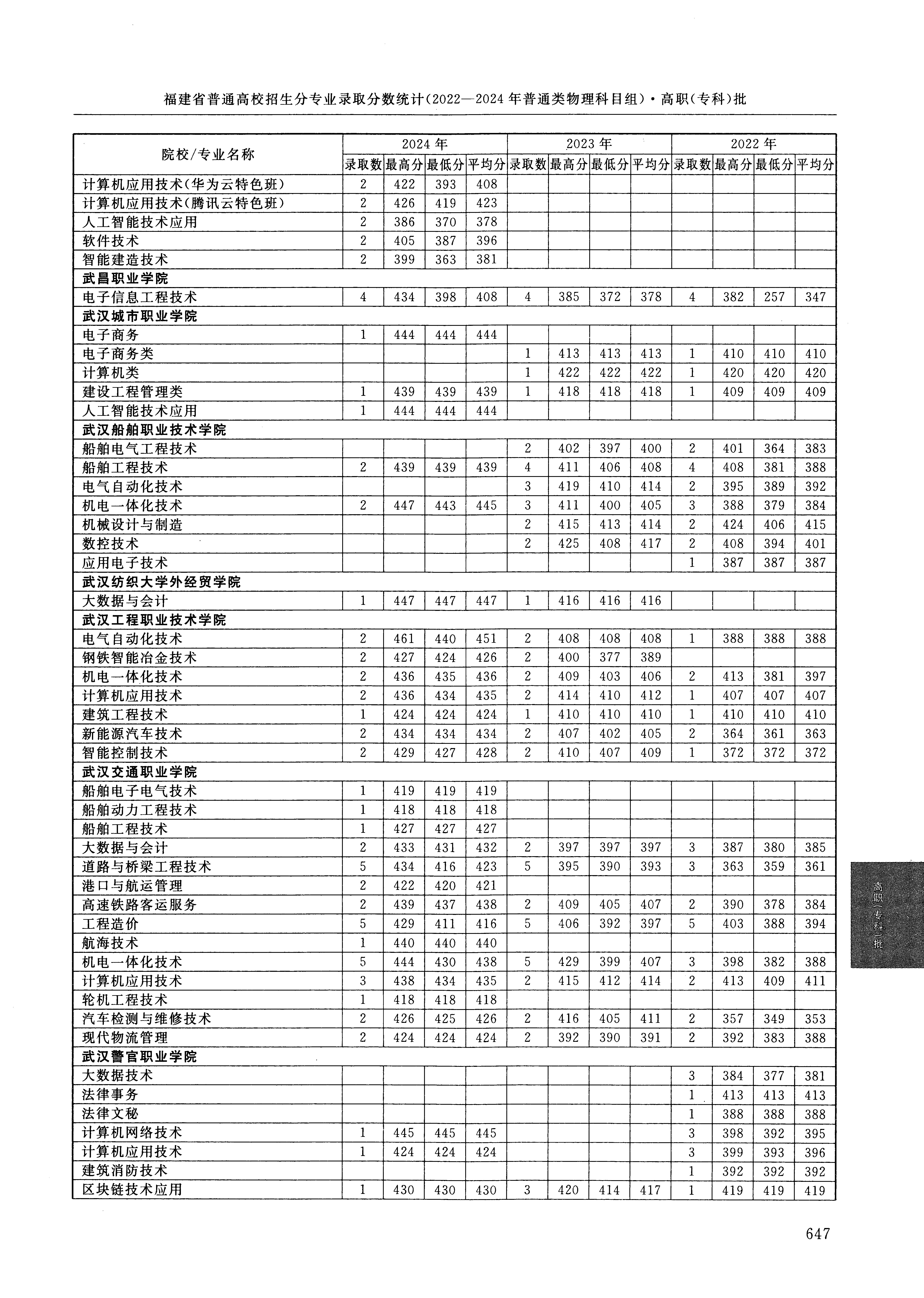 2024年福建高考普通类高职(专科)批 武汉工程职业技术学院 的 电气自动化技术 专业录取分数溯源信息