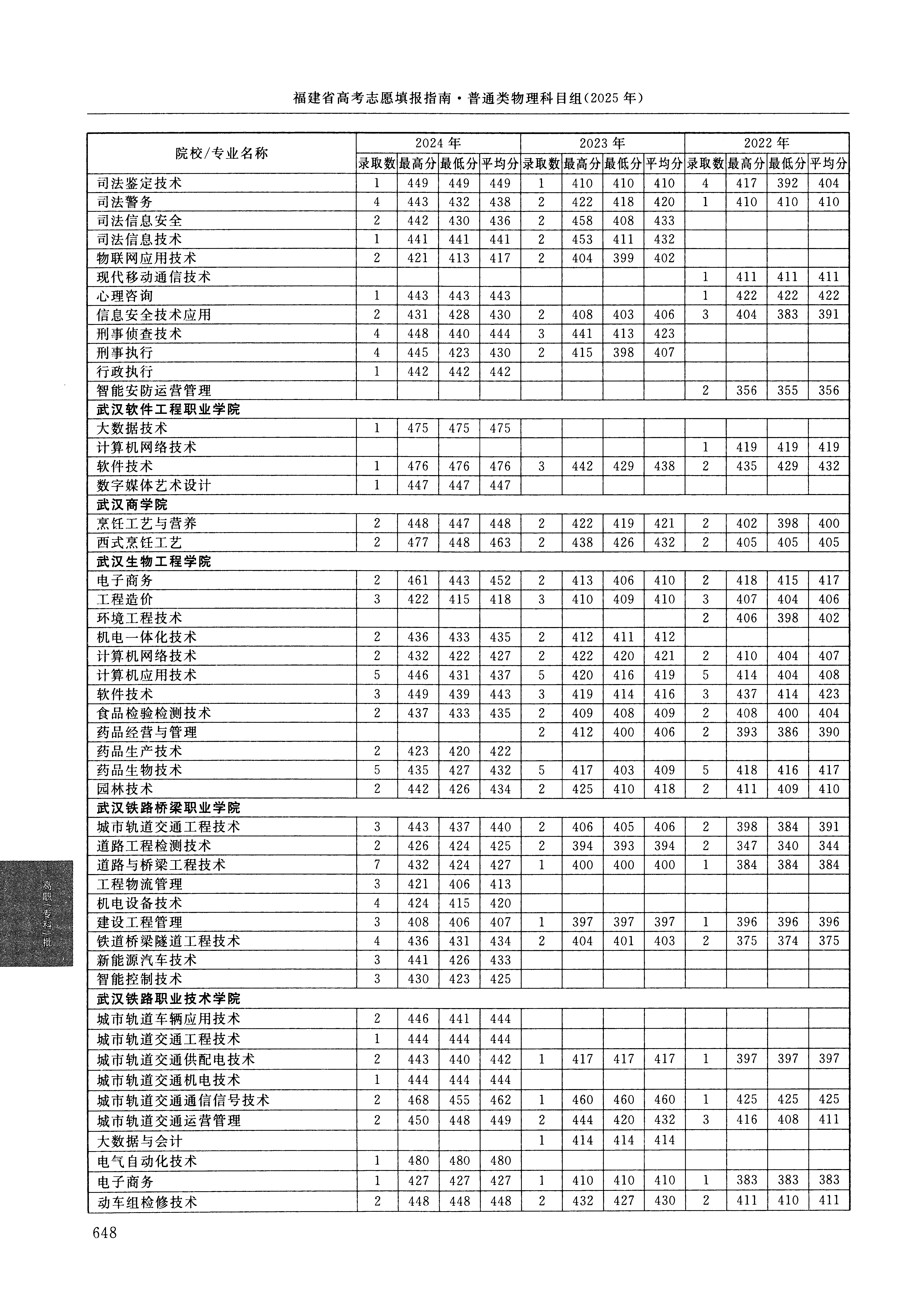 2024年福建高考普通类高职(专科)批 武汉铁路桥梁职业学院 的 工程物流管理 专业录取分数溯源信息