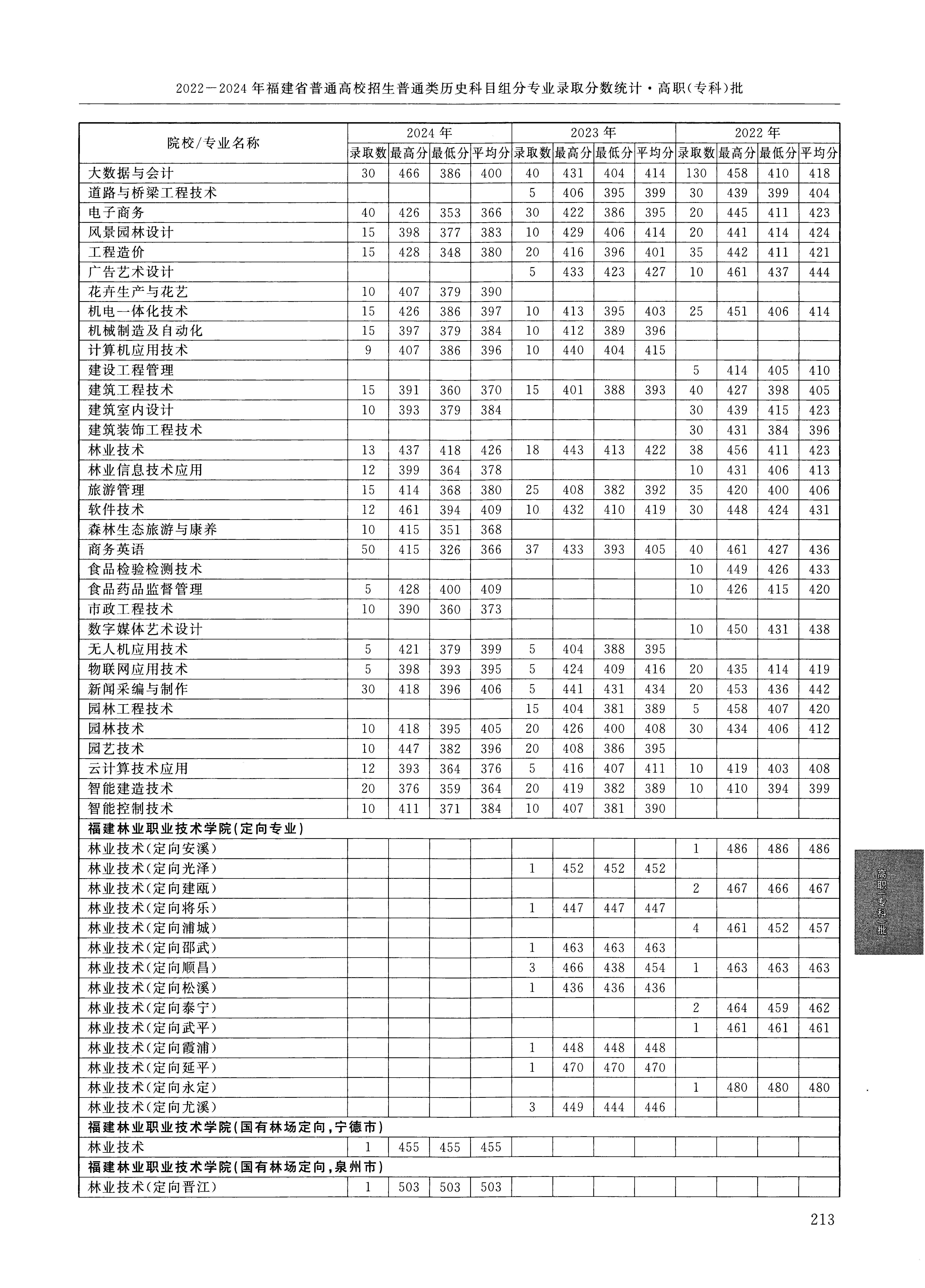 2024年福建高考普通类高职(专科)批 福建林业职业技术学院 的 云计算技术应用 专业录取分数溯源信息