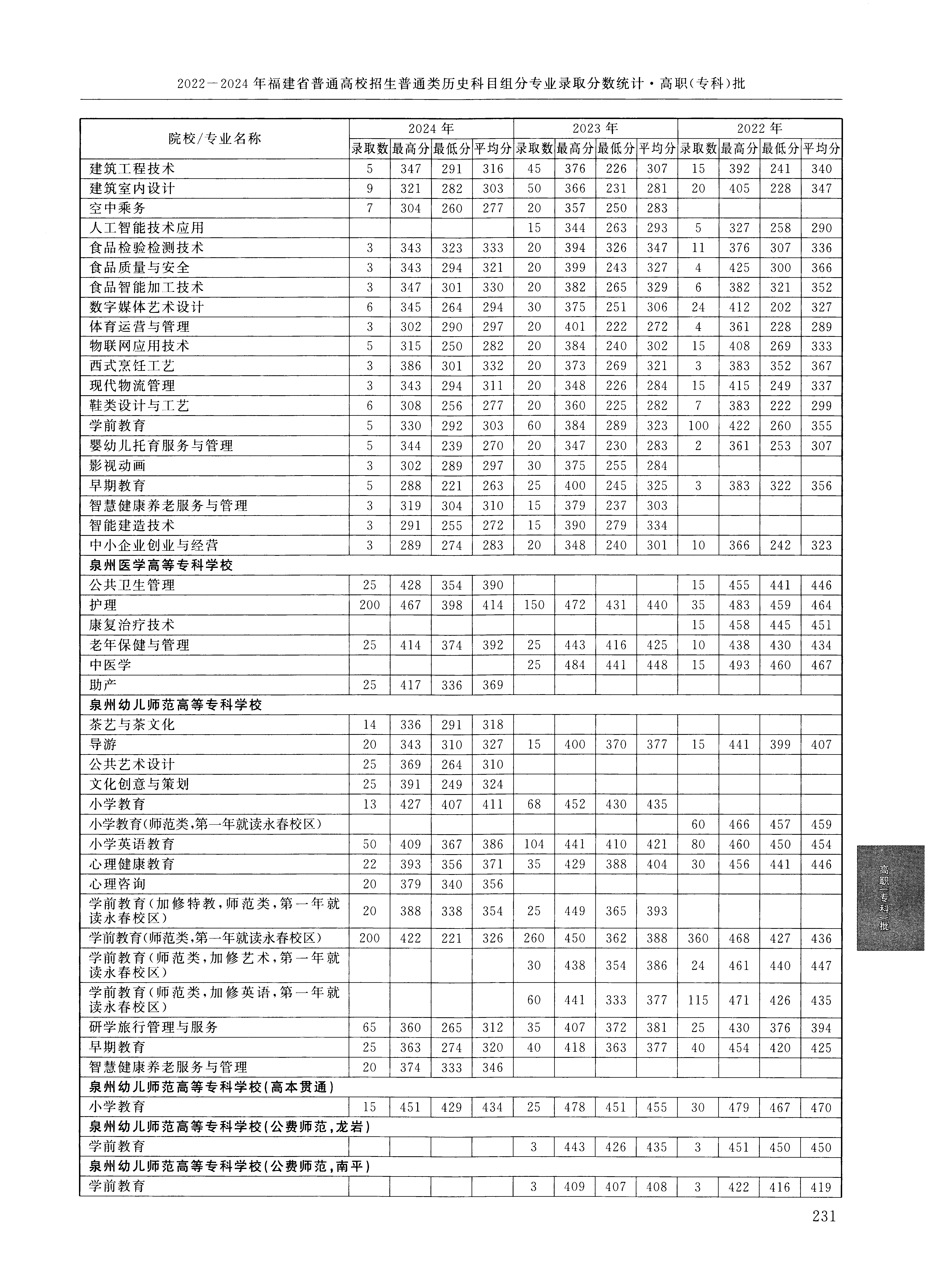 2024年福建高考普通类高职(专科)批 泉州医学高等专科学校 的 老年保健与管理 专业录取分数溯源信息
