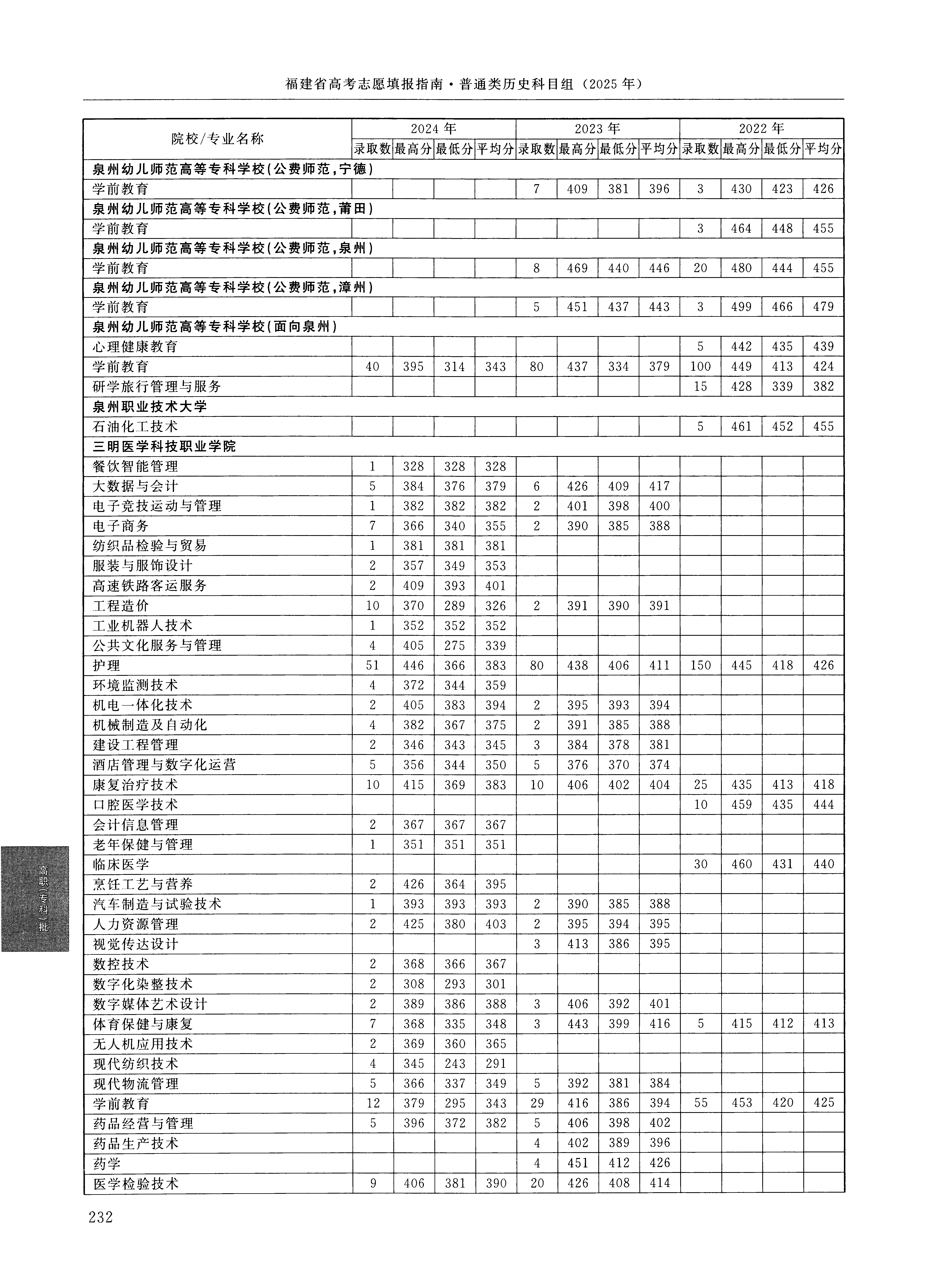 2024年福建高考普通类高职(专科)批 泉州幼儿师范高等专科学校 的 学前教育 专业录取分数溯源信息