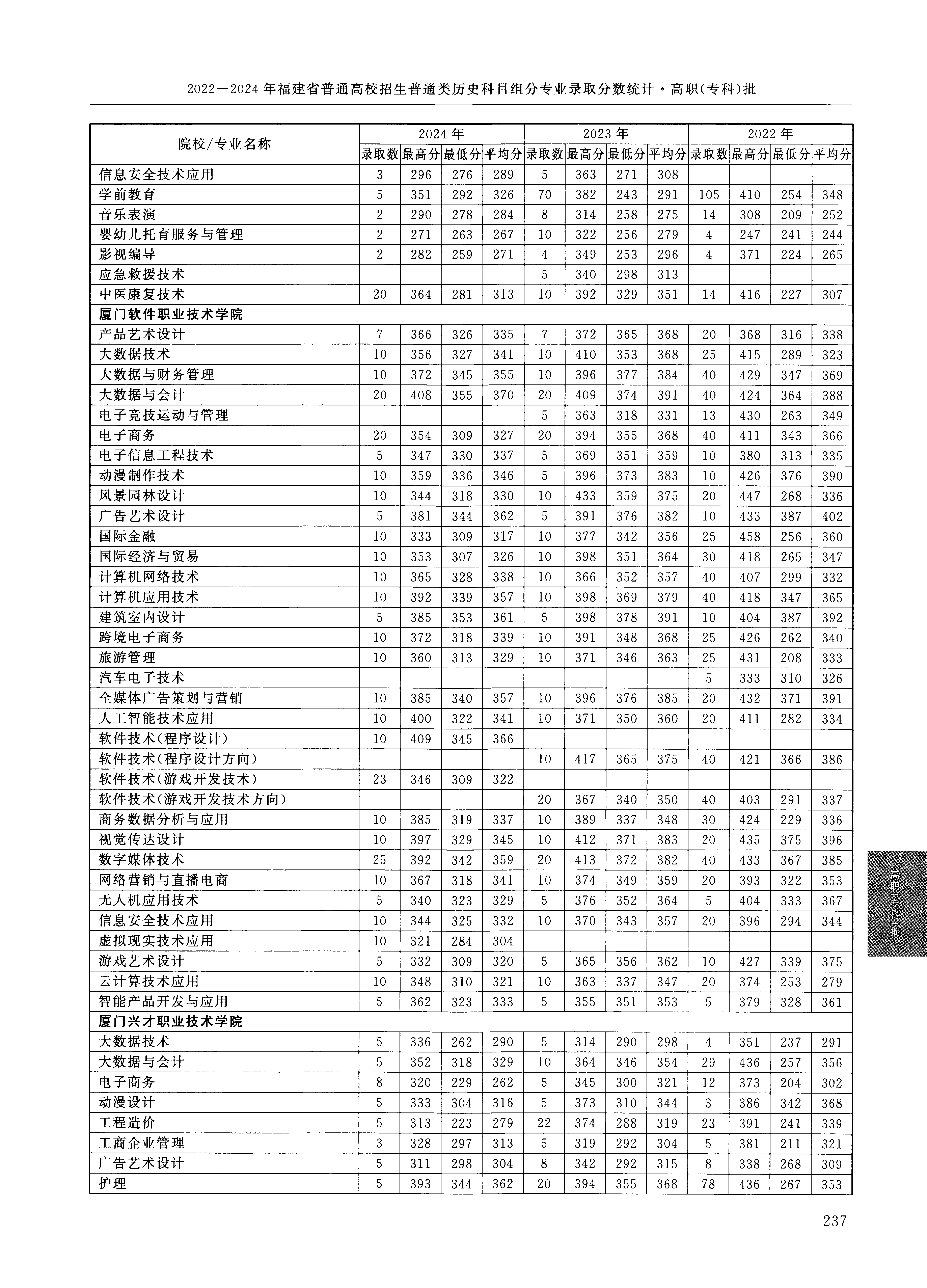 | 7078 | 厦门兴才职业技术学院 | 021 | 商务英语 | 255 | 55949 | 专科 | 历史 ,再选: 不限 | 1 |