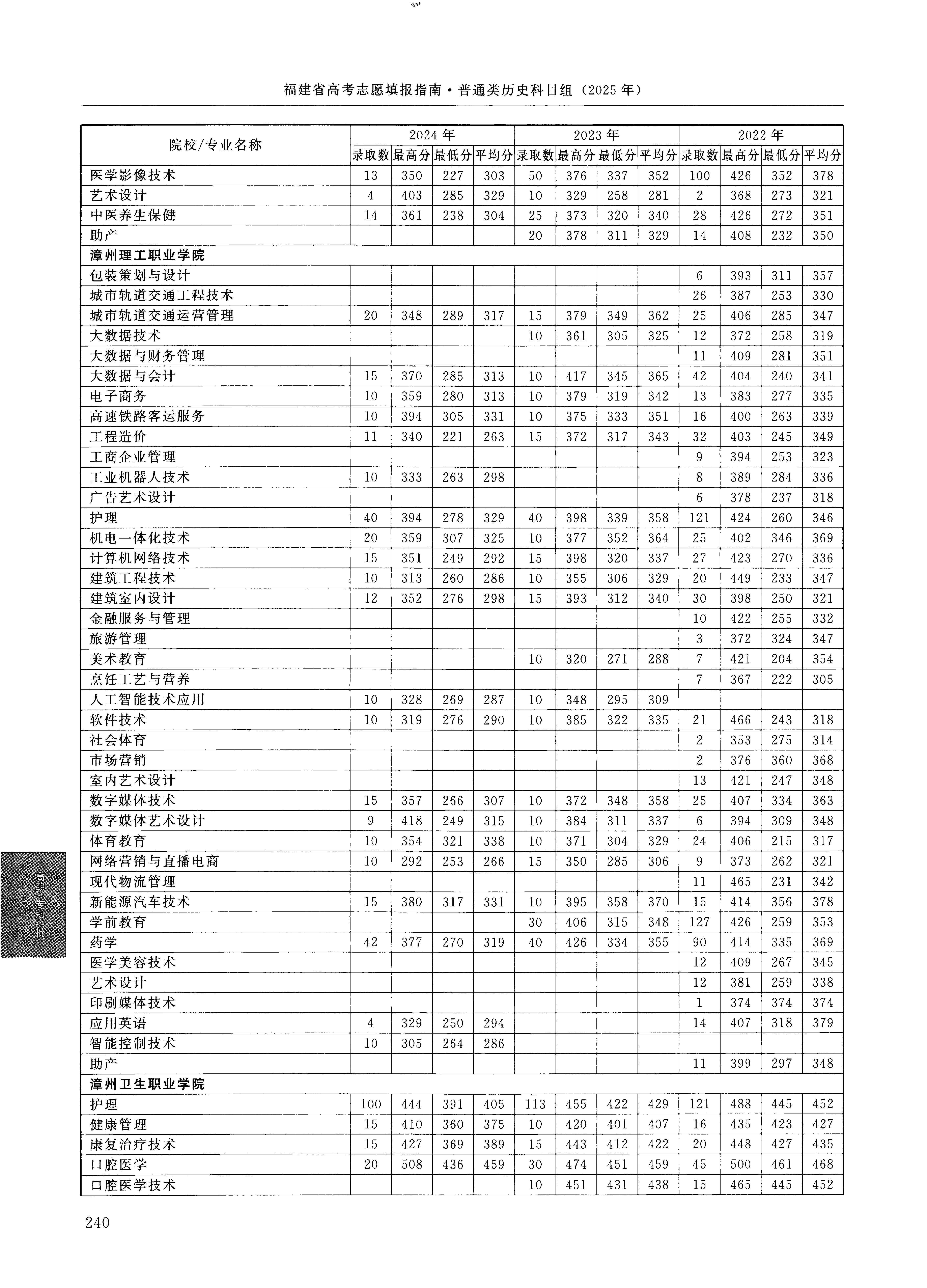 | 7082 | 漳州理工职业学院 | 020 | 体育教育 | 321 | 50254 | 专科 | 历史 ,再选: 不限 | 1 |
