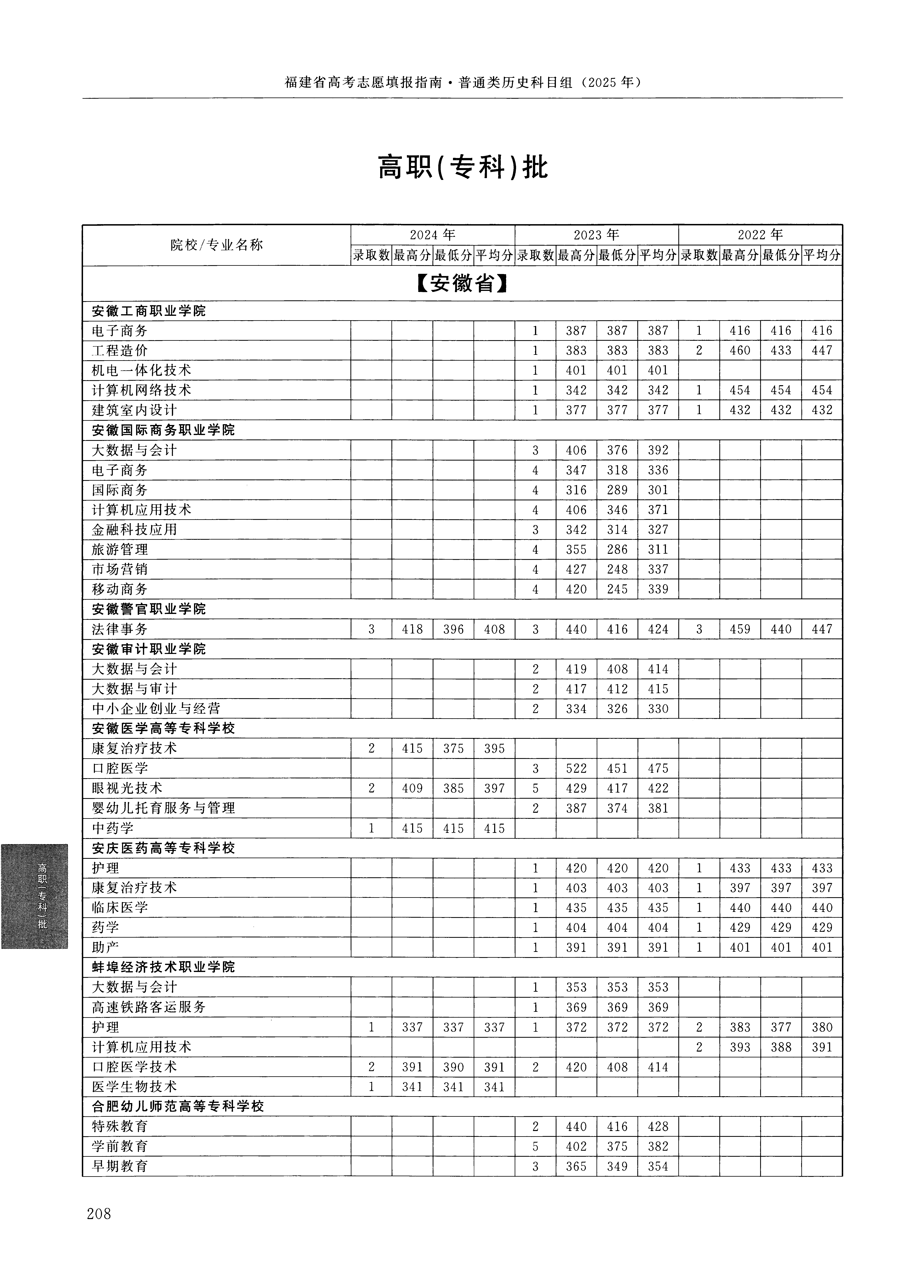 2024年福建高考普通类高职(专科)批 安徽医学高等专科学校 的 中药学 专业录取分数溯源信息