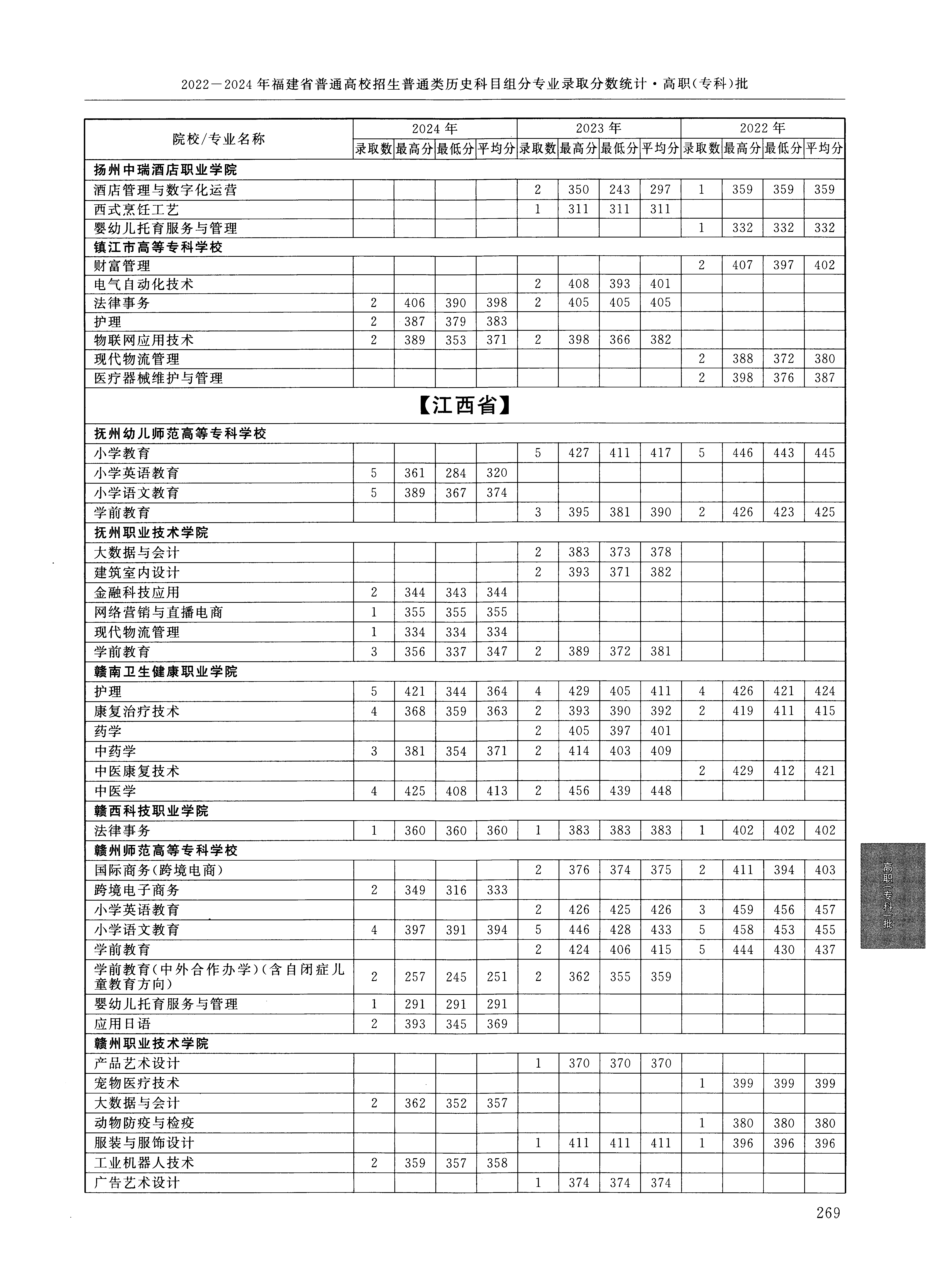 2024年福建高考普通类高职(专科)批 赣南卫生健康职业学院 的 康复治疗技术 专业录取分数溯源信息