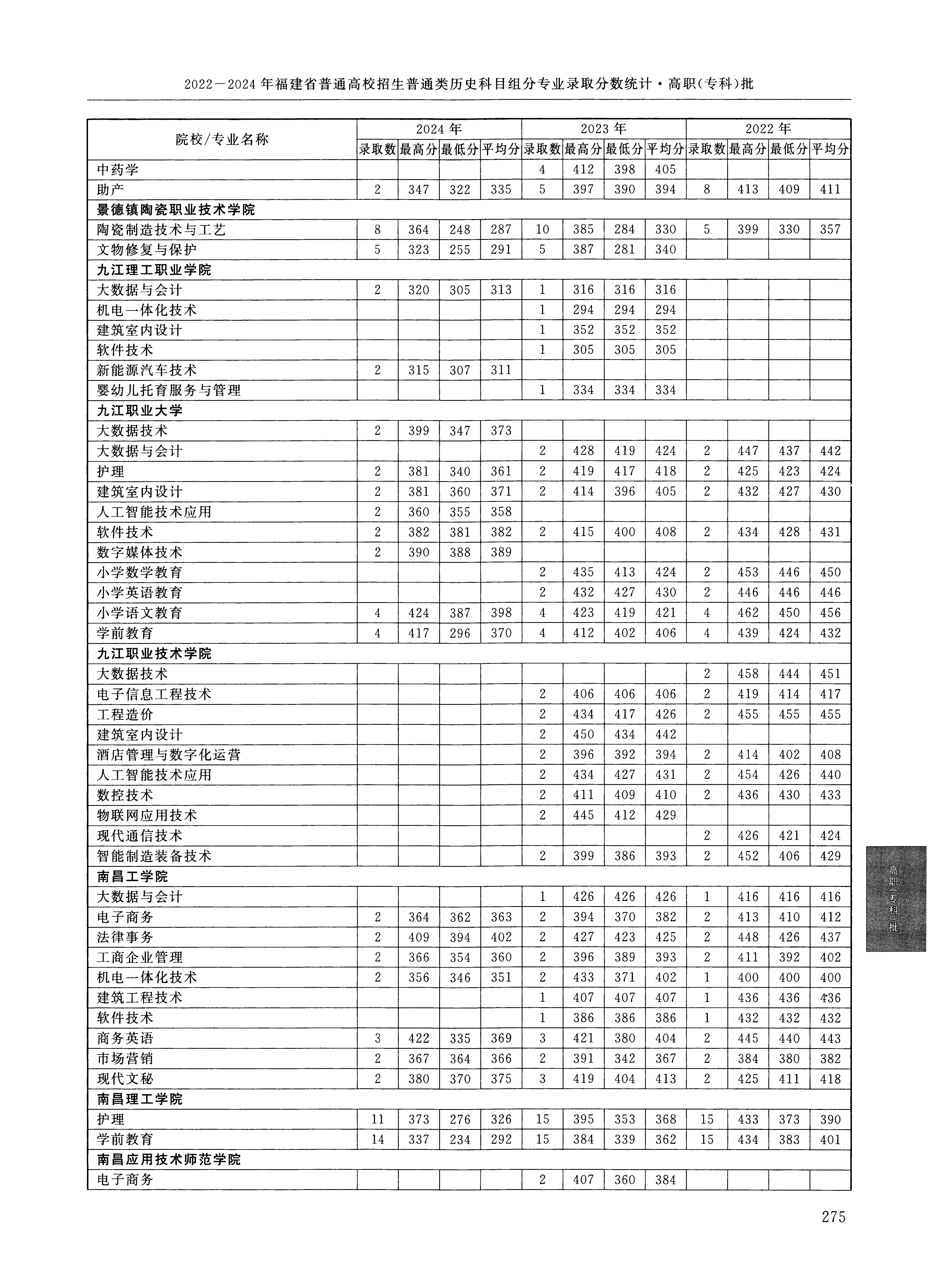 2024年福建高考普通类高职(专科)批 九江理工职业学院 的 新能源汽车技术 专业录取分数溯源信息