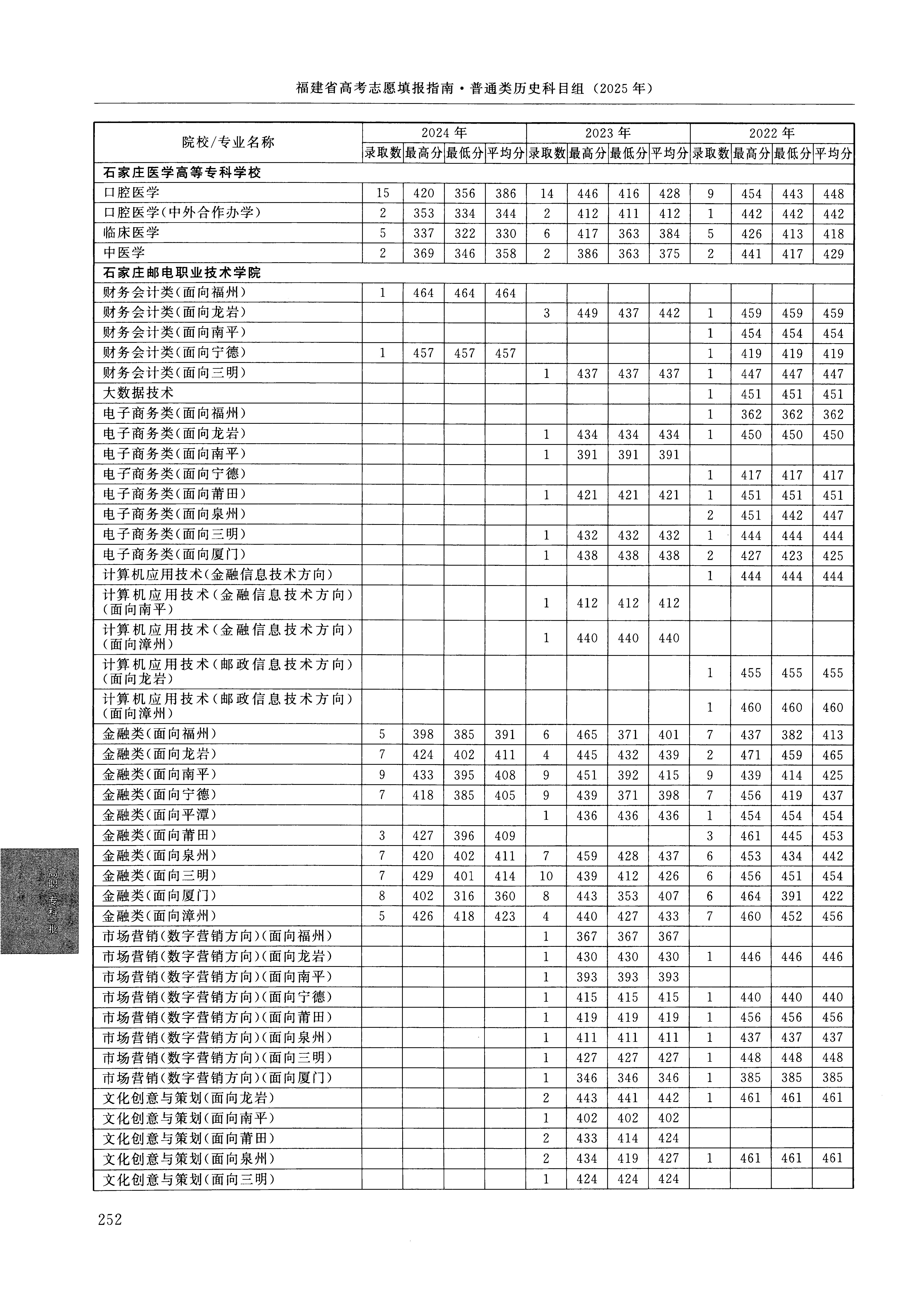 2024年福建高考普通类高职(专科)批 石家庄医学高等专科学校 的 中医学 专业录取分数溯源信息