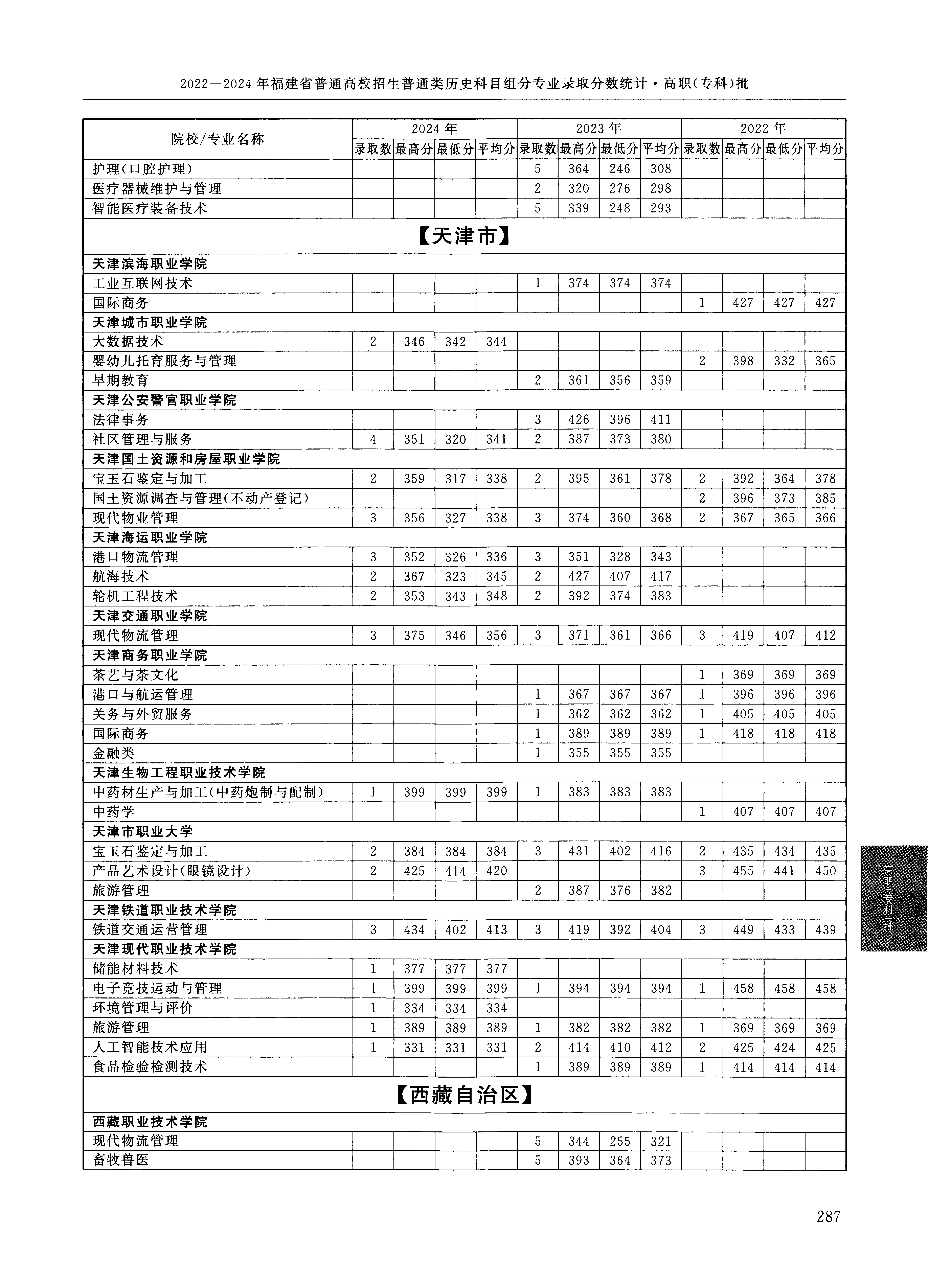 2024年福建高考普通类高职(专科)批 天津铁道职业技术学院 的 铁道交通运营管理 专业录取分数溯源信息