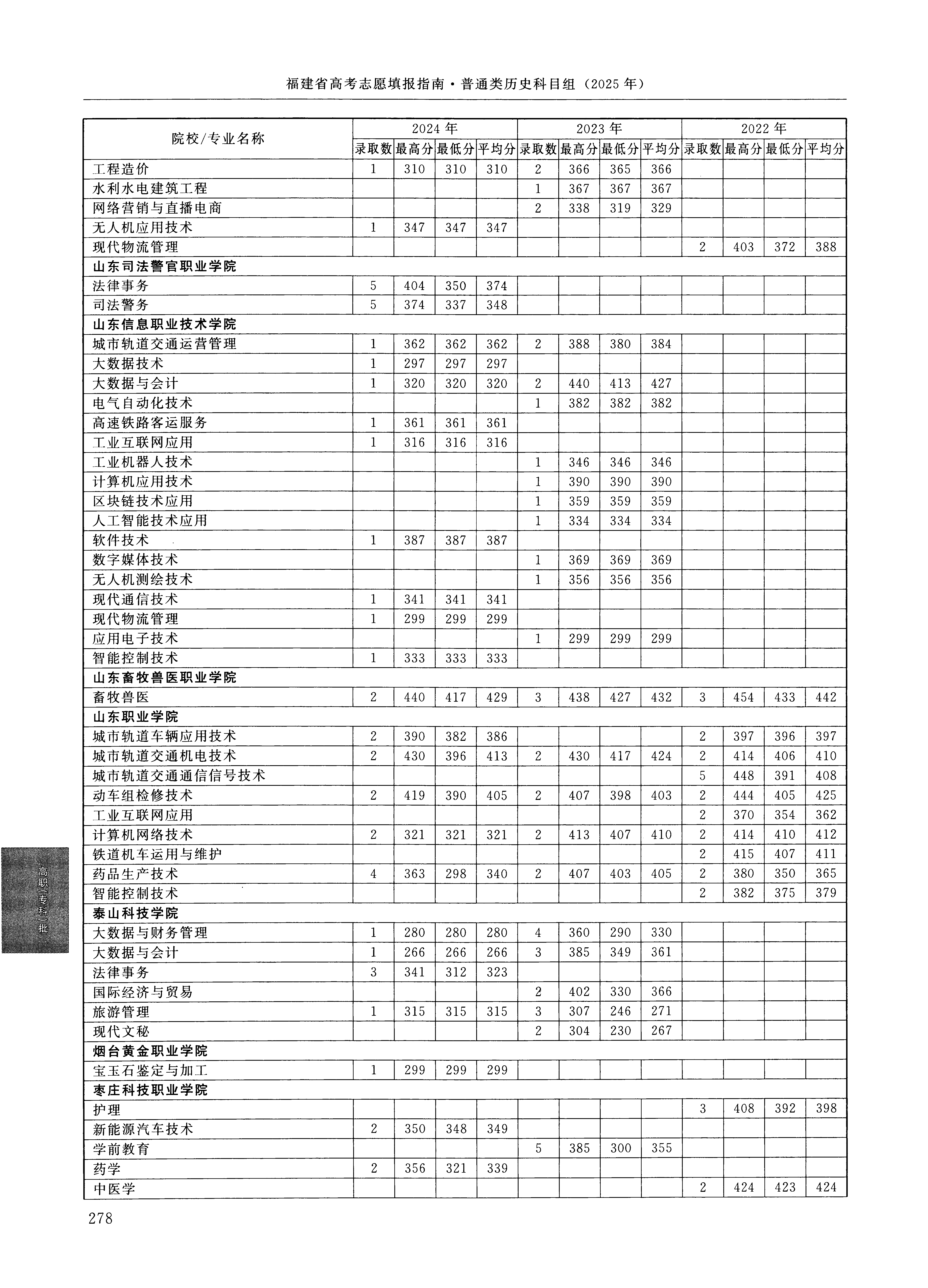 2024年福建高考普通类高职(专科)批 枣庄科技职业学院 的 药学 专业录取分数溯源信息