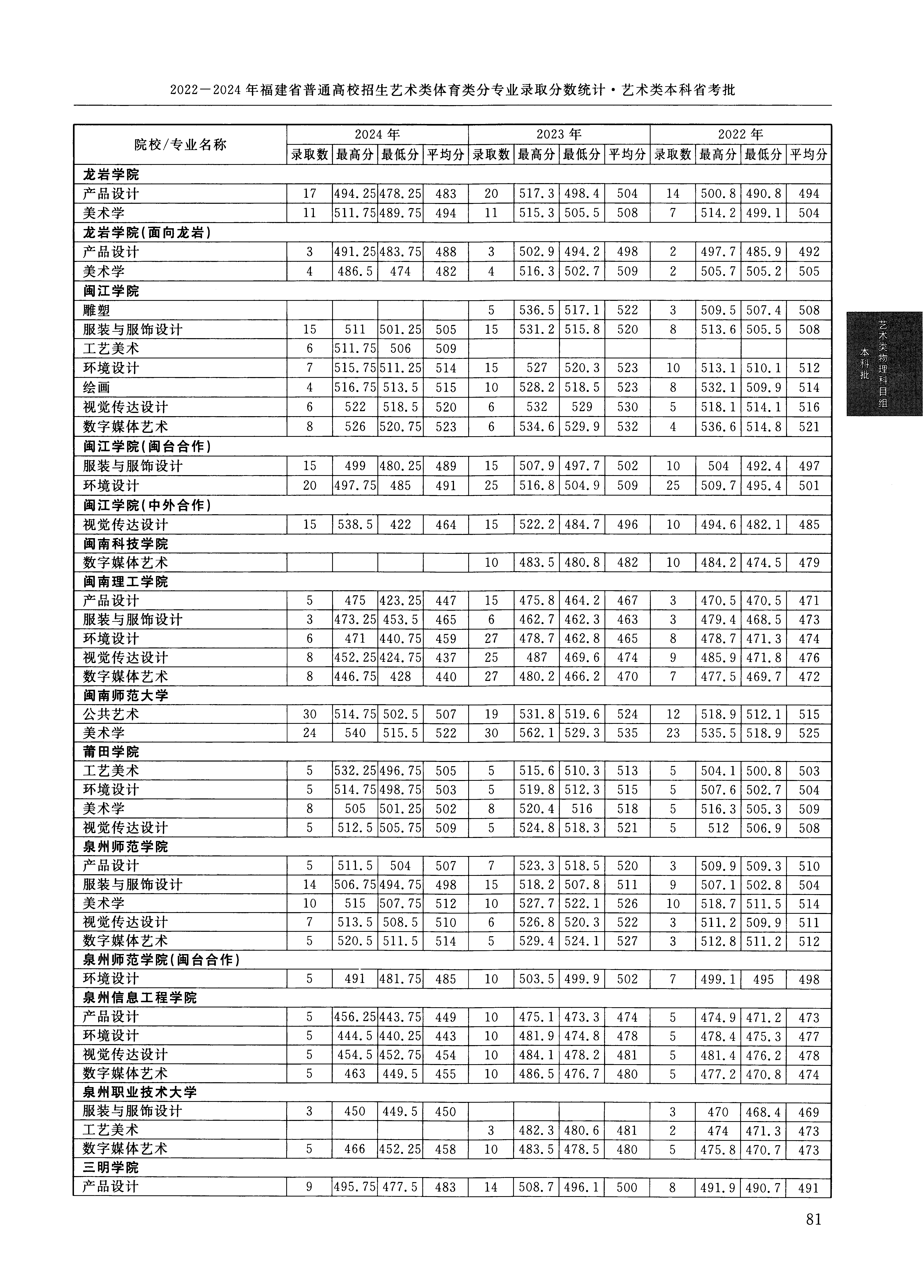 2024年福建高考艺术类本科省考批美术与设计类 泉州信息工程学院 的 视觉传达设计 专业录取分数溯源信息