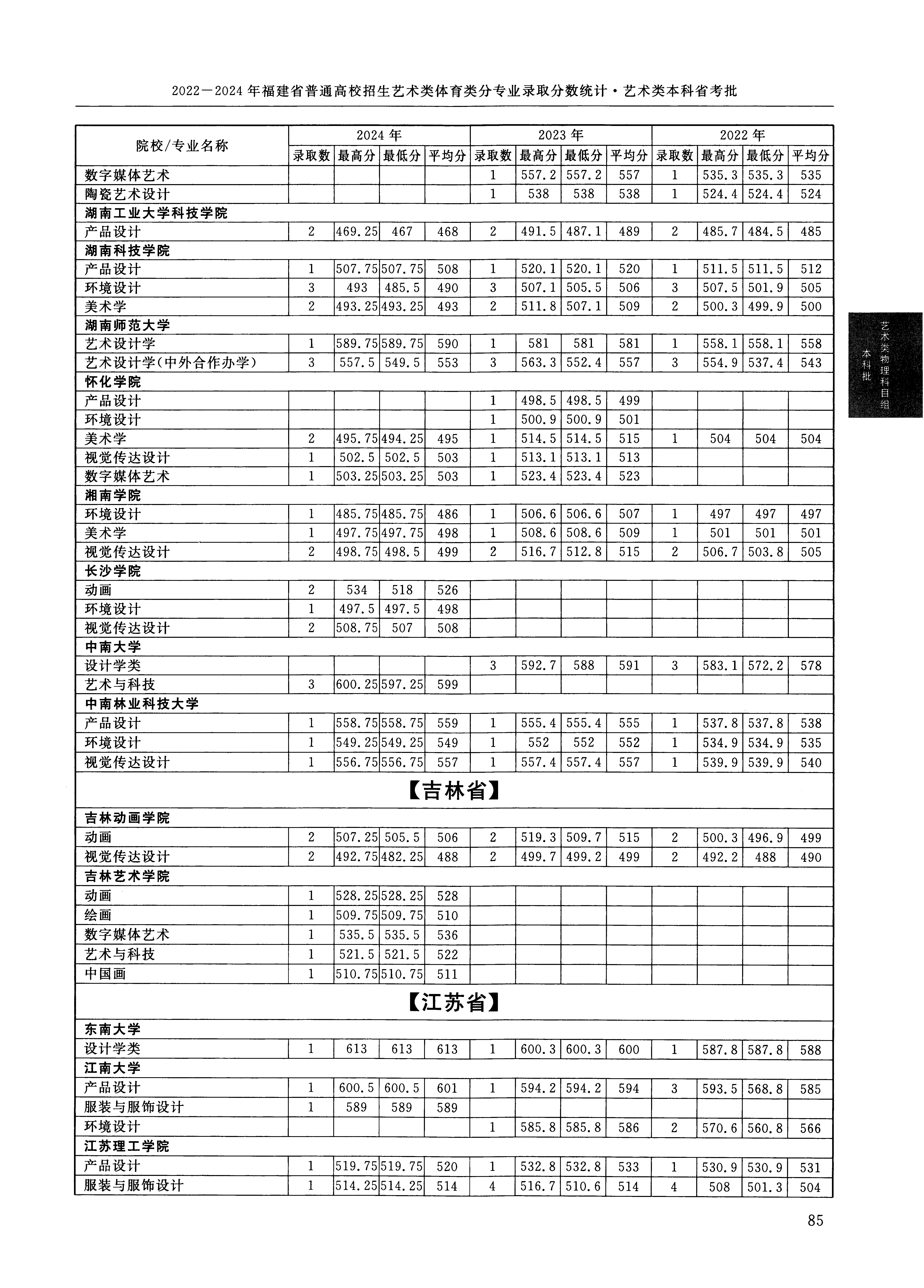2024年福建高考艺术类本科省考批美术与设计类 湖南师范大学 的 艺术设计学 专业录取分数溯源信息