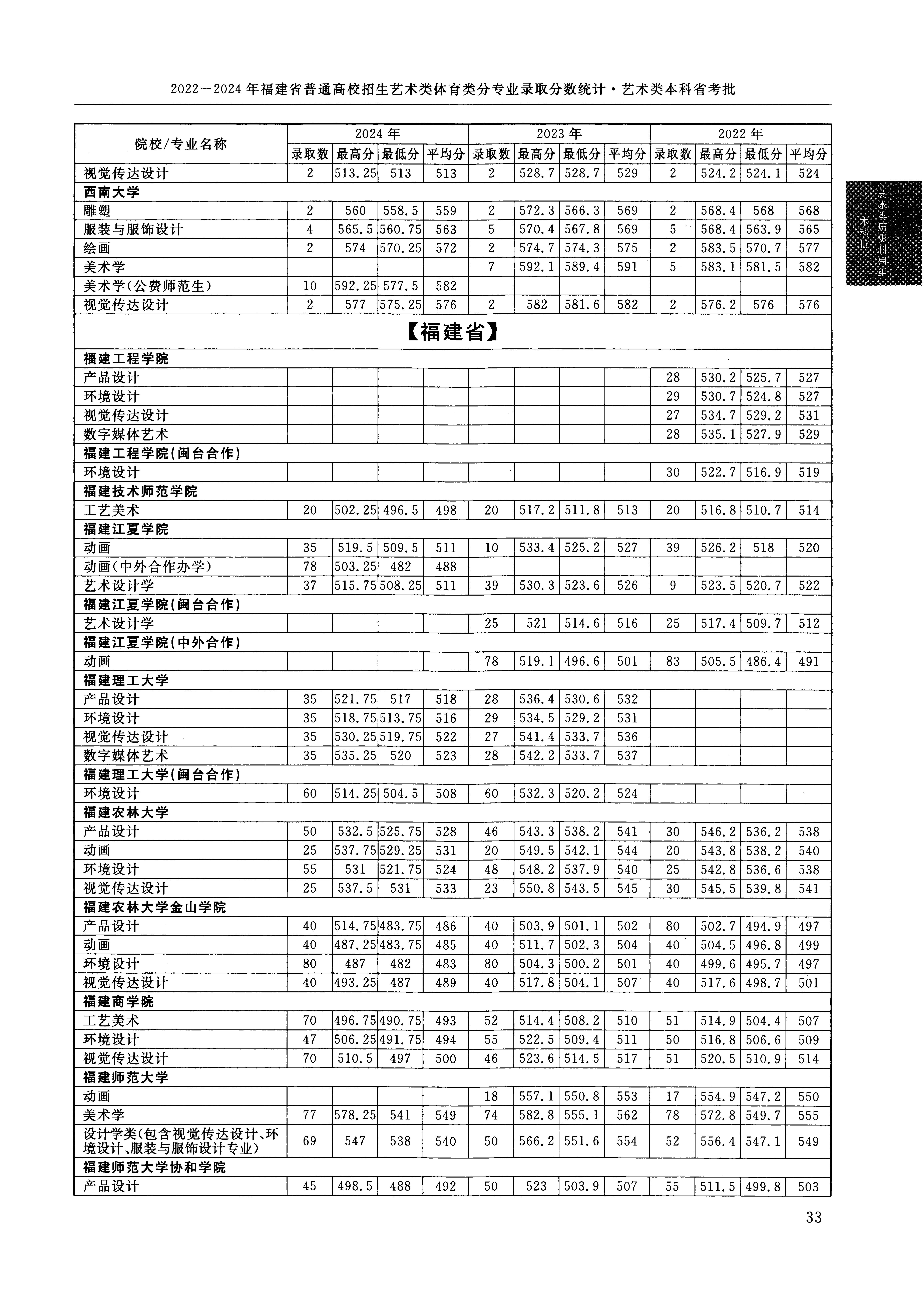 2024年福建高考艺术类本科省考批美术与设计类 福建江夏学院 的 动画 专业录取分数溯源信息