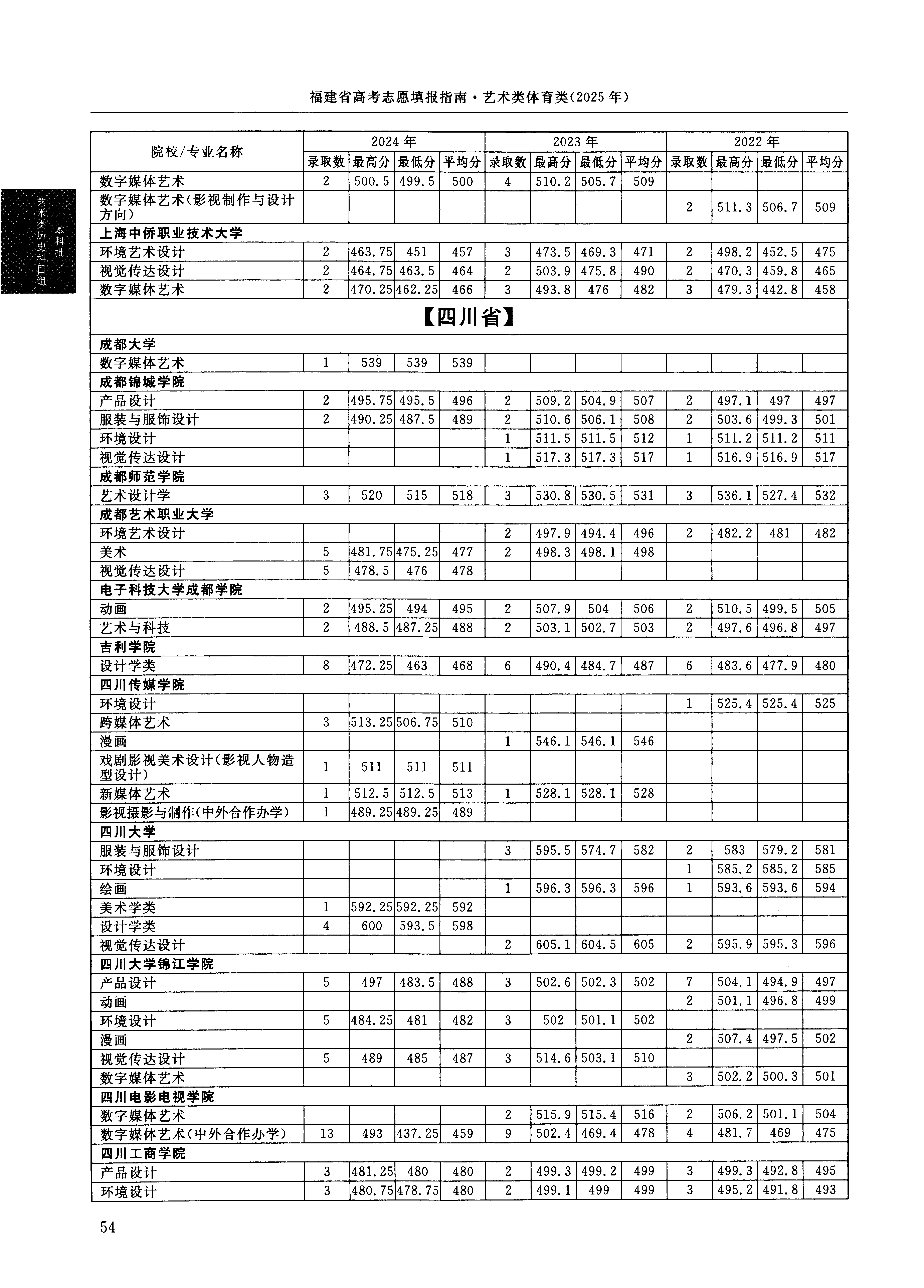 2024年福建高考艺术类本科省考批美术与设计类 成都艺术职业大学 的 视觉传达设计 专业录取分数溯源信息