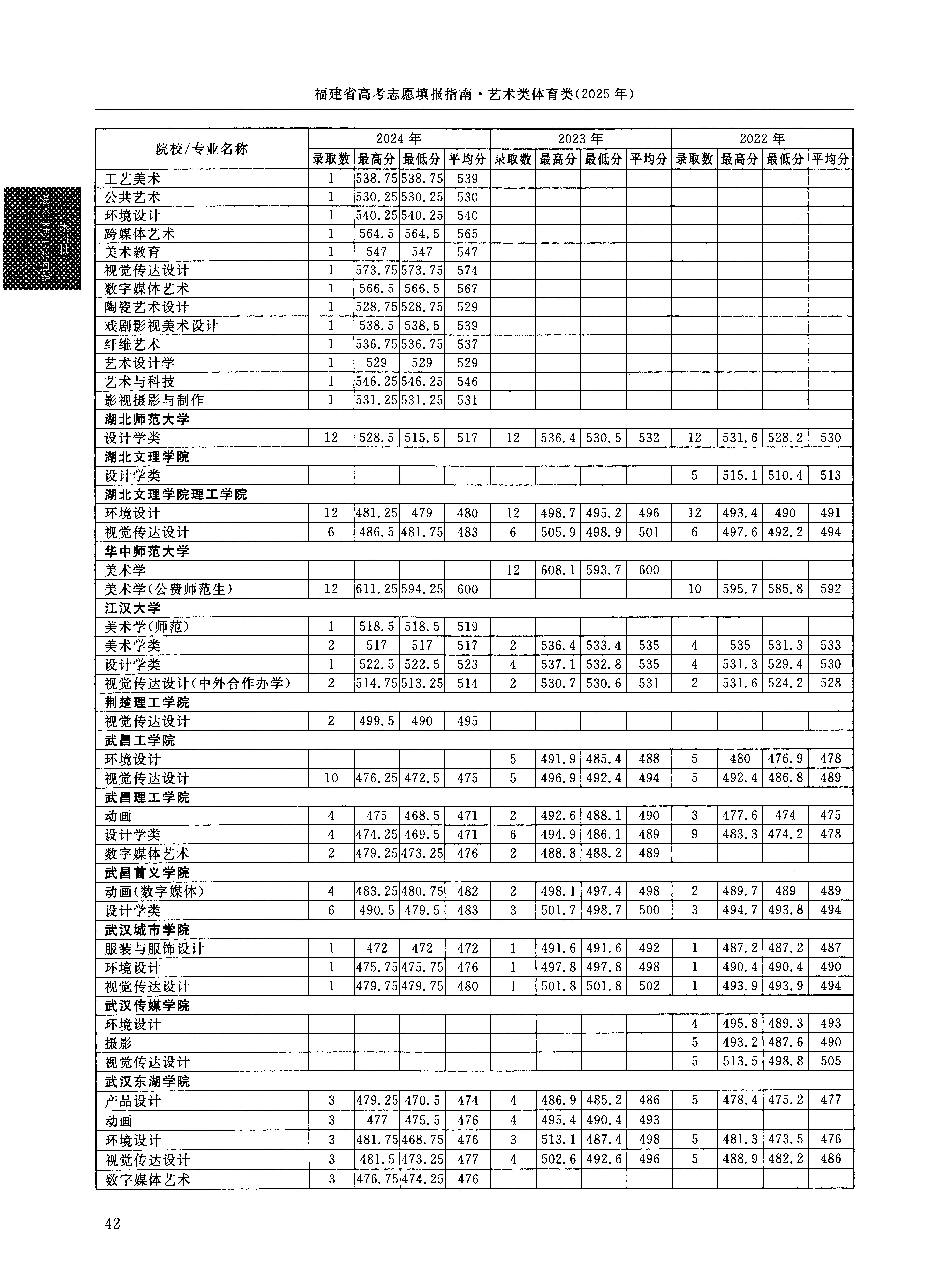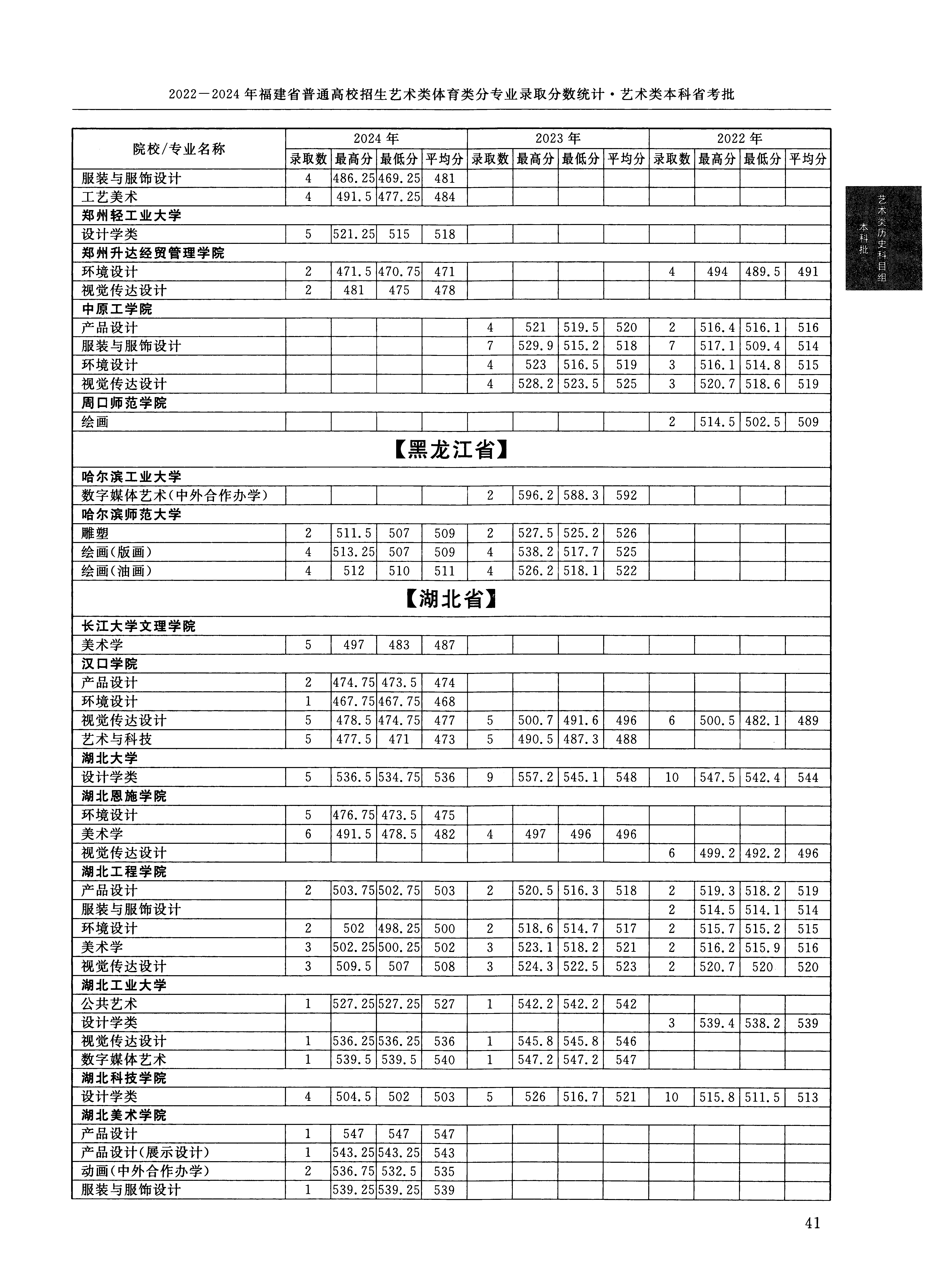 2024年福建高考艺术类本科省考批美术与设计类 湖北美术学院 的 艺术与科技 专业录取分数溯源信息
