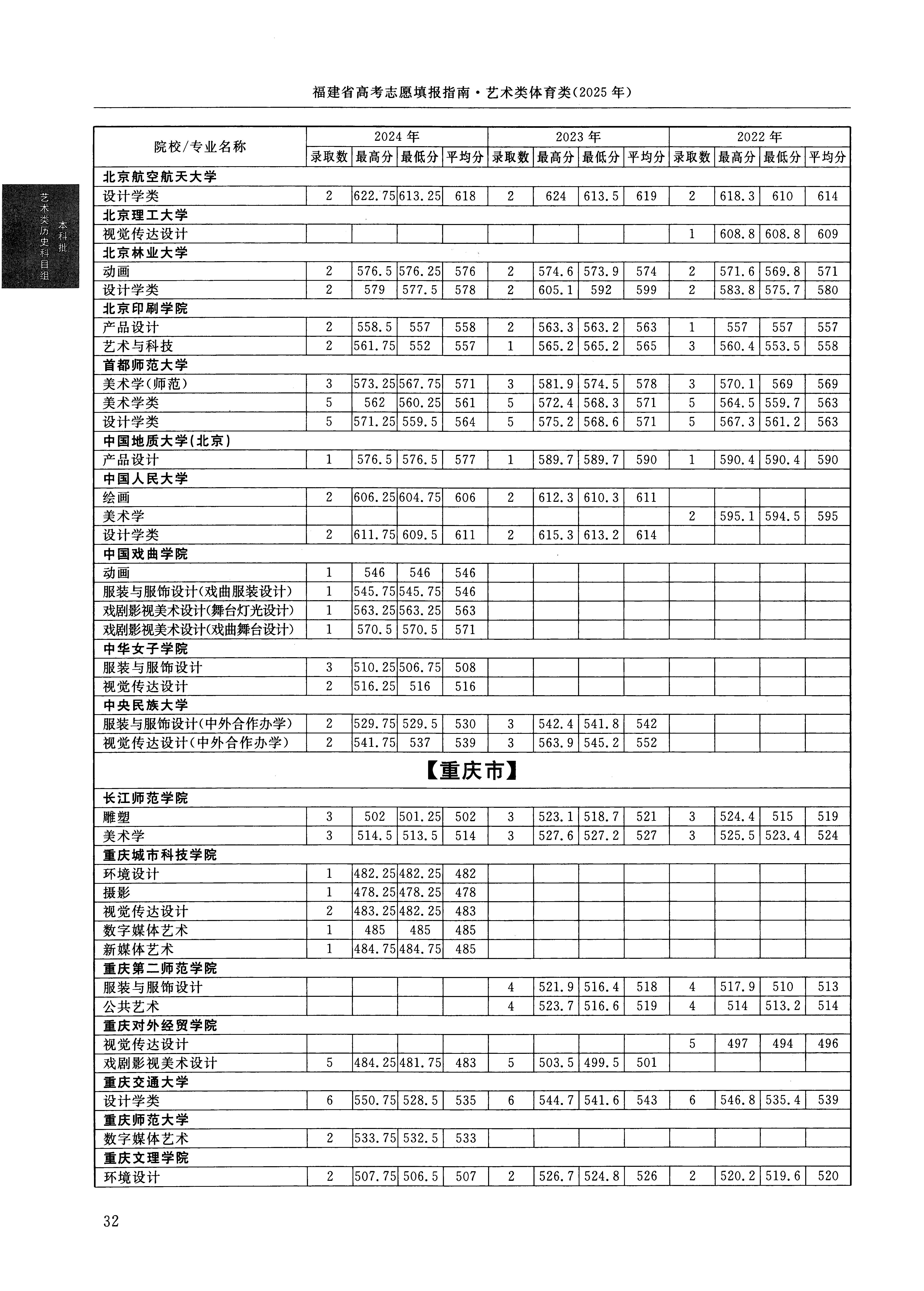 2024年福建高考艺术类本科省考批美术与设计类 中国人民大学 的 设计学类 专业录取分数溯源信息
