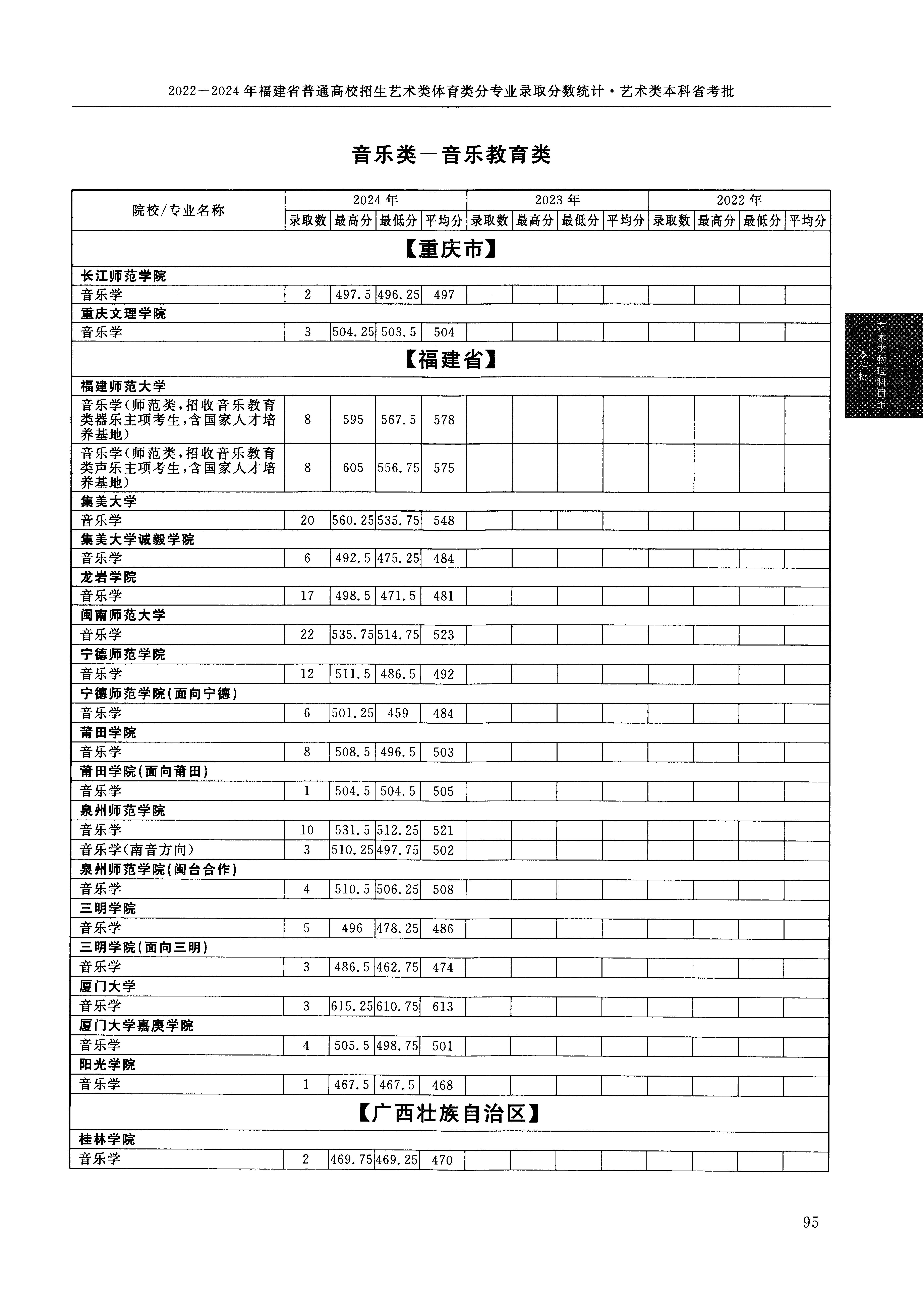 2024年福建高考艺术类本科省考批音乐类教育类 集美大学 的 音乐学 专业录取分数溯源信息