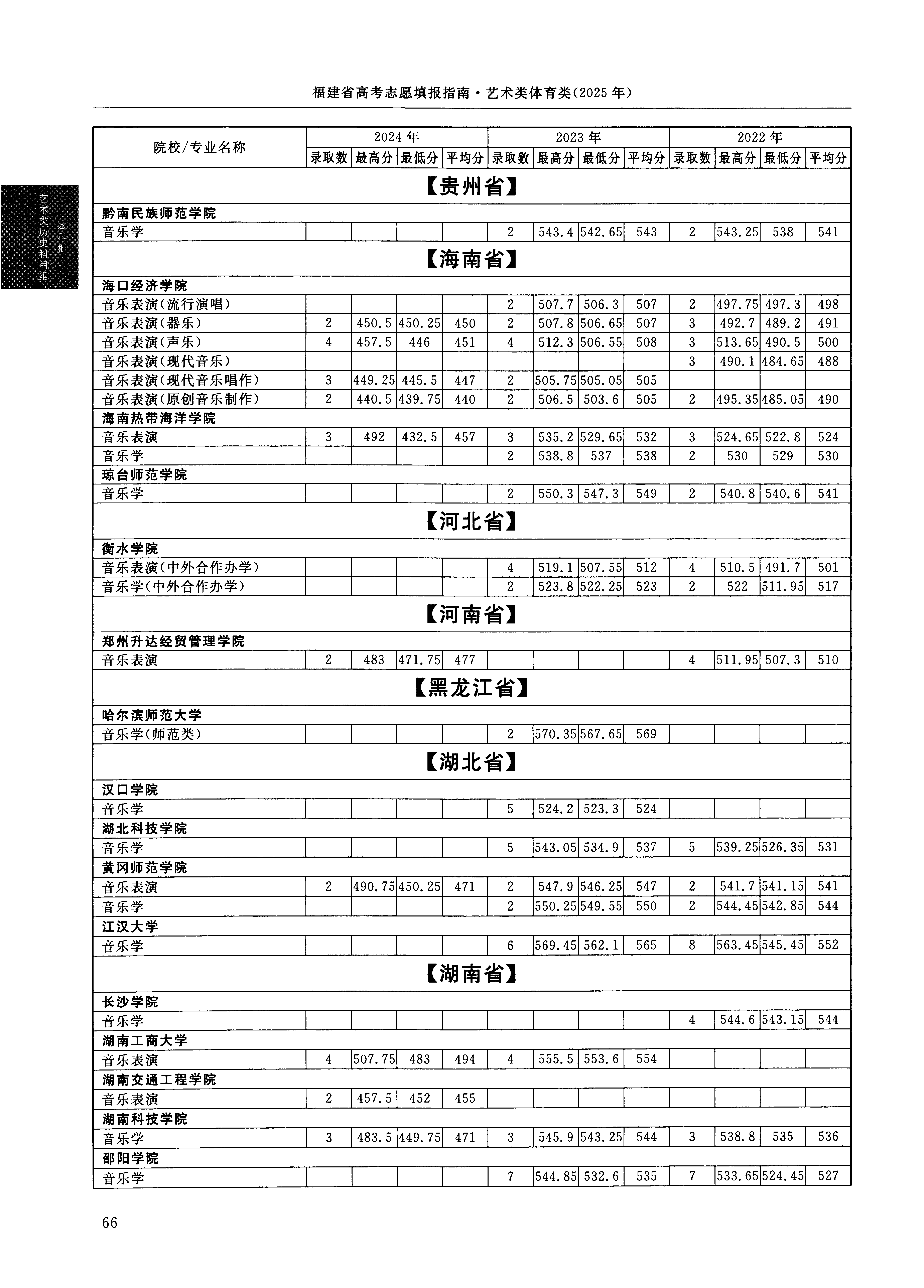 2024年福建高考艺术类本科省考批音乐类表演类 海口经济学院 的 音乐表演 专业录取分数溯源信息