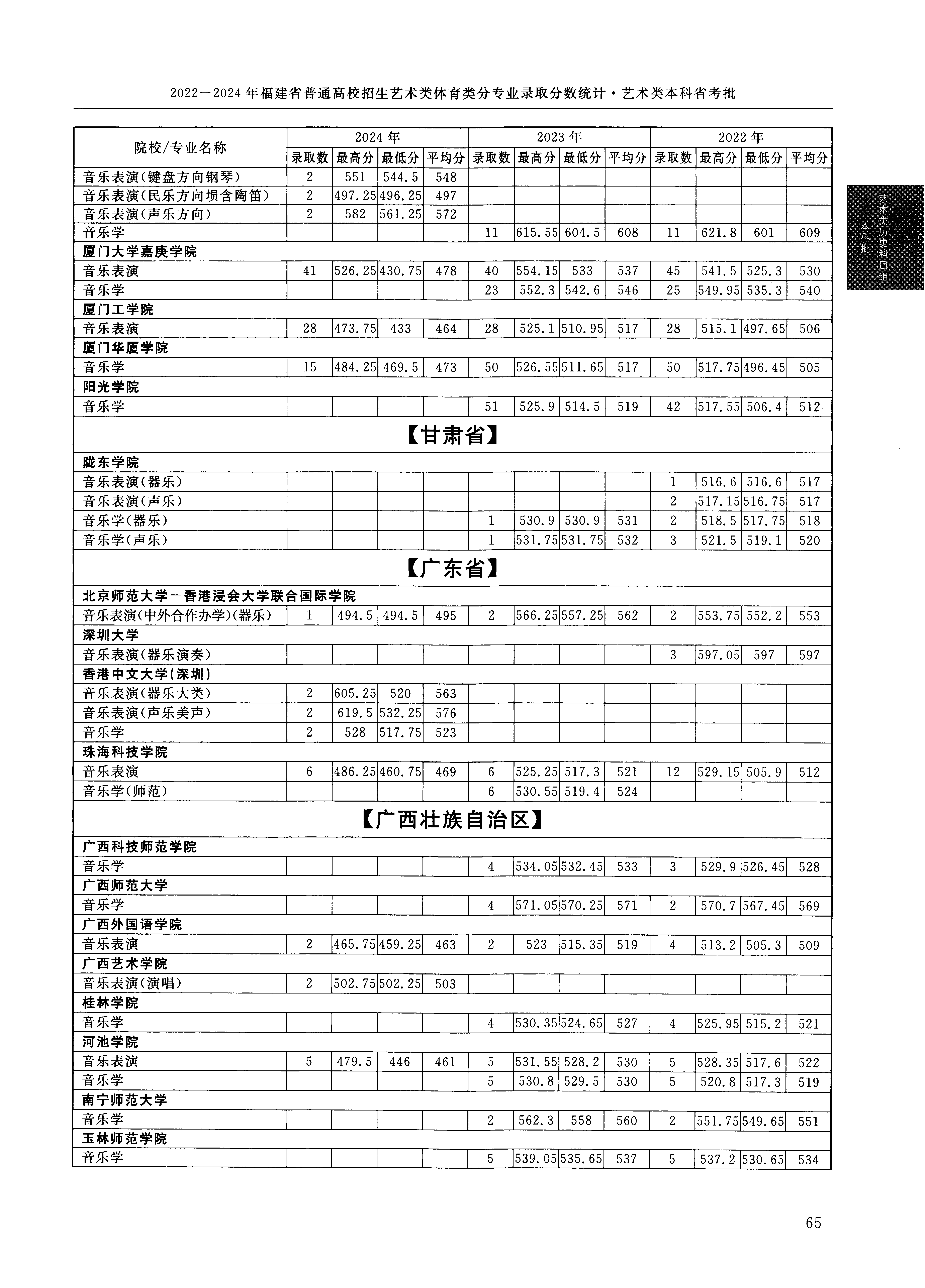 2024年福建高考艺术类本科省考批音乐类表演类 河池学院 的 音乐表演 专业录取分数溯源信息
