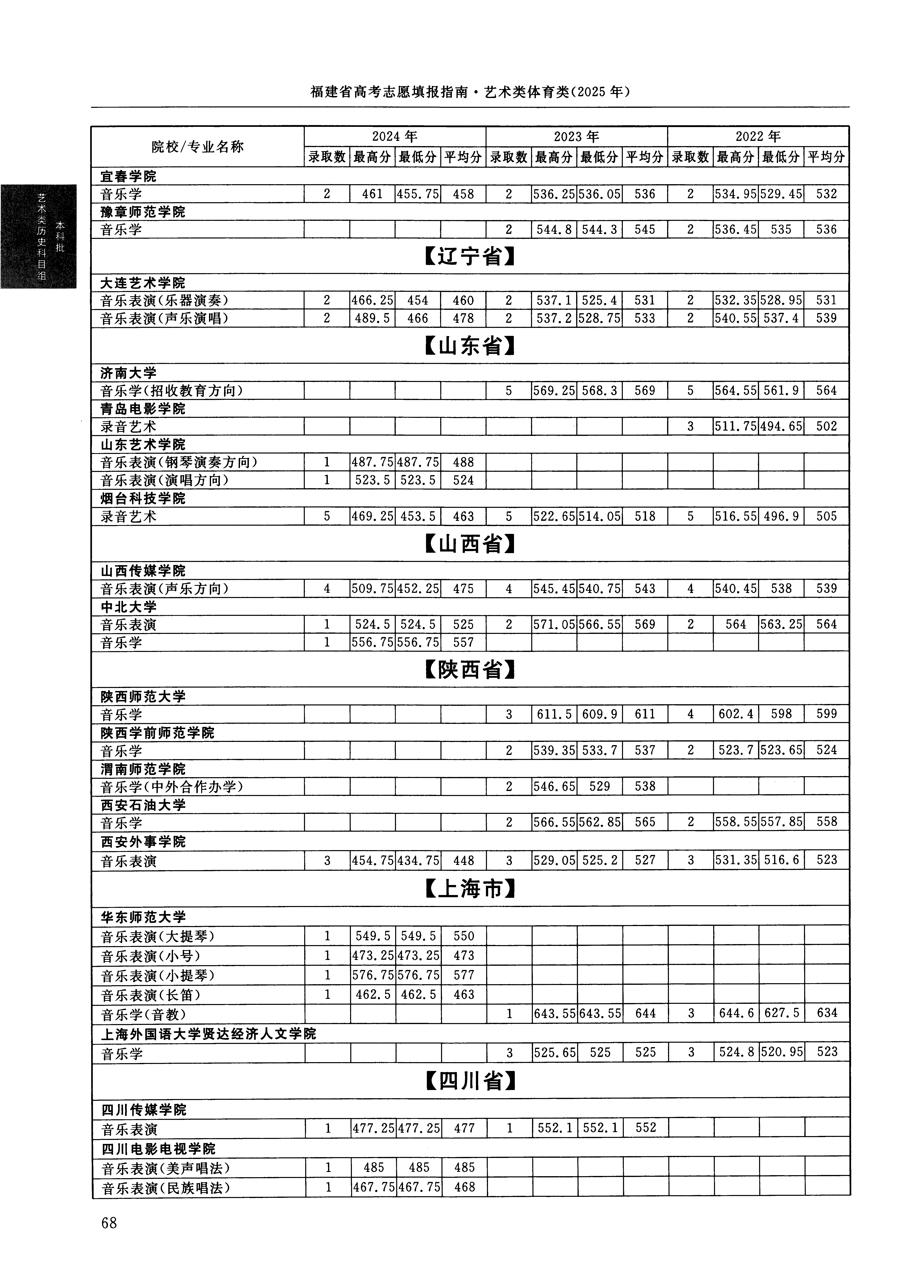 2024年福建高考艺术类本科省考批音乐类表演类 山西传媒学院 的 音乐表演 专业录取分数溯源信息